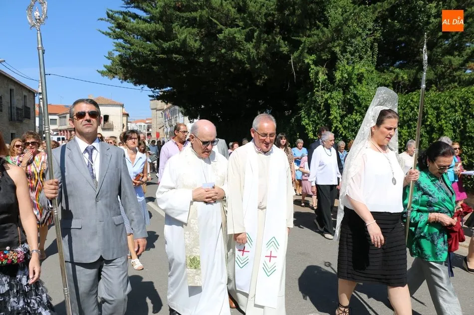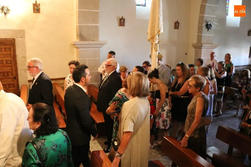 Antes de ese instante, que finalizaba con la felicitación de decenas de familiares, amigos y cofrades a los nuevos mayordomos, en la iglesia parroquial se celebraba la eucaristía, ceremonia concelebrada que daba paso al ofertorio y posterior procesión hasta la ermita.