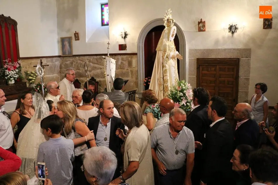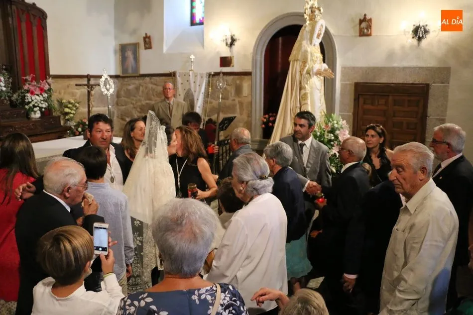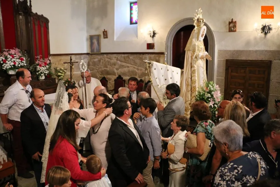 Después del homenaje ofrecido la noche antes por cientos de villaviejenses, la Virgen de los Caballeros regresaba en la mañana de este miércoles 28 de agosto a los aposentos de su ermita, un acto que culminaba con la entrega de varas de las que durante el último año han sido sus mayordomos, los hermanos Elisa García y José Ignacio García Paulos, a sus sustitutos, Andrés Celestino García Martín y Elena Muelas Moro.