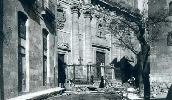 Las imágenes de estas obras, reflejadas en la fotografía adjunta, fueron tomadas en 1932 por Adolf Almató, durante su estancia en Salamanca. Este fotógrafo no se limitó a retratar monumentos, su deseo era el de reflejar el devenir del tiempo y la actividad cotidiana. Ancianos, niños jugando, bestias de carga o, como en esta imagen, transeúntes hacia sus ocupaciones y obreros trabajando.