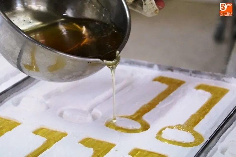 Sin embargo, siempre siguiendo los pasos de elaboración, que no son otros que añadir azúcar, glucosa, agua y el aroma del sabor que se quiera dar, dejándolo cocer hasta el punto de caramelo. Tras esto, es el turno de preparar los moldes, definiendo ya la forma que se quiera dar (llave, gallo, cruz,?), para posteriormente y cuando el caramelo esté hecho, verterlo sobre el recipiente con la forma ya definida. Así una a una, hasta conseguir las 500 unidades que prevé Pastelerías ?La Teresiana? realizar con motivo de la romería de la Virgen de Otero.