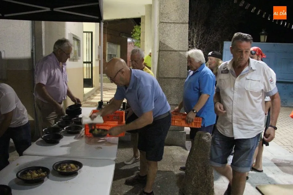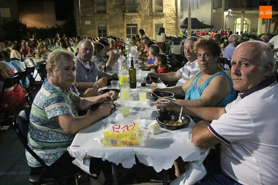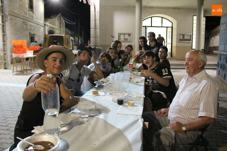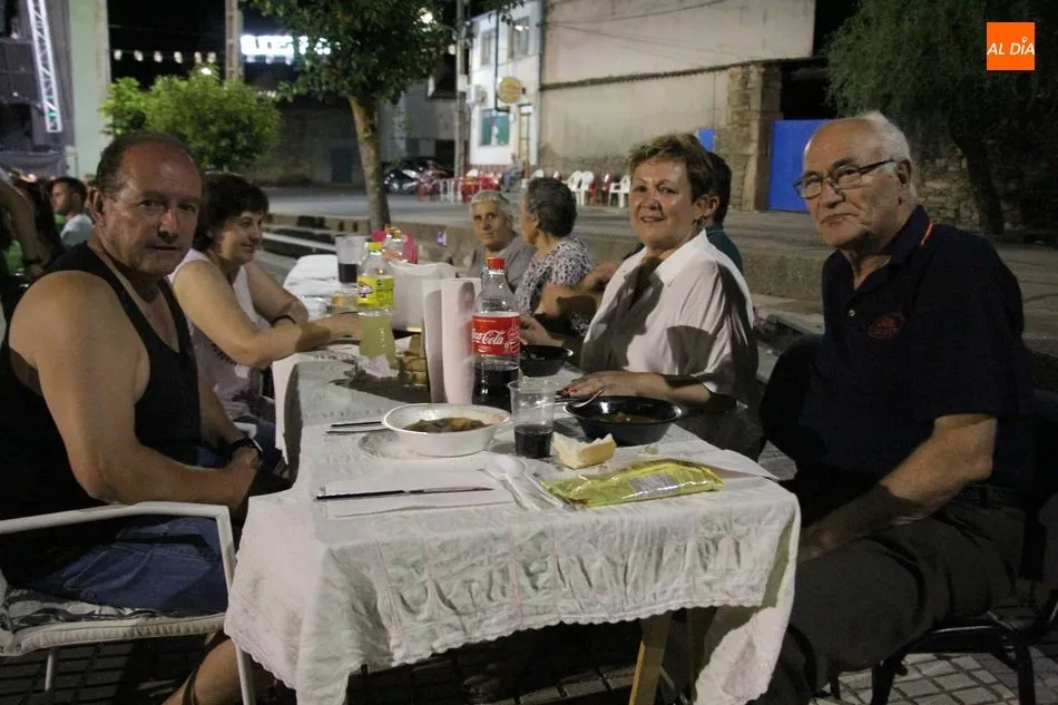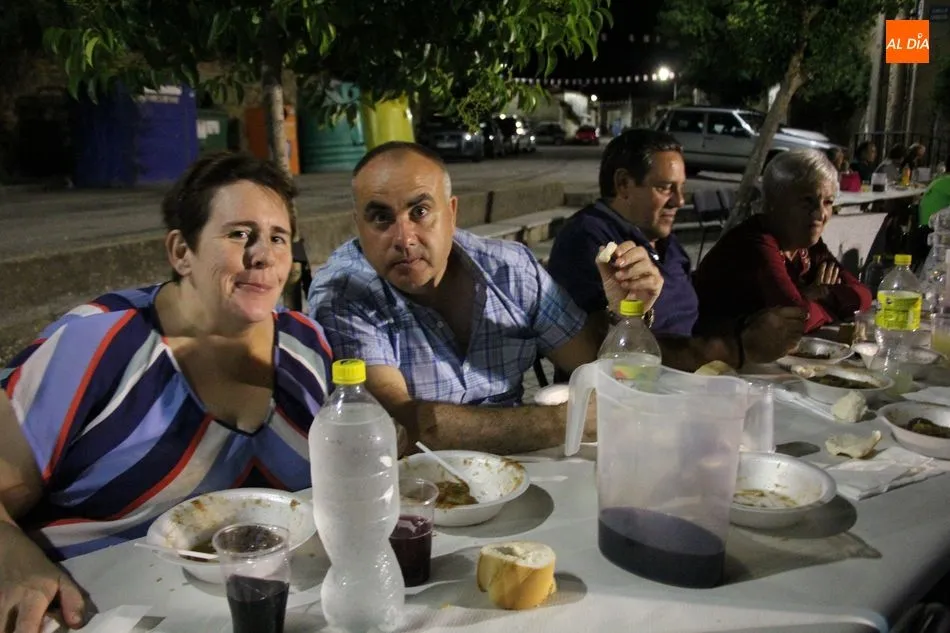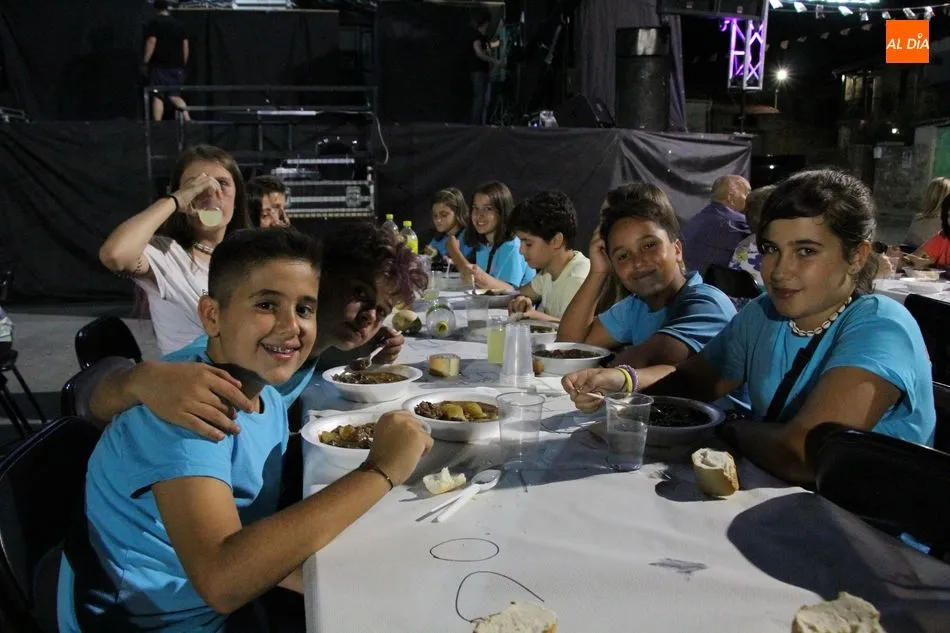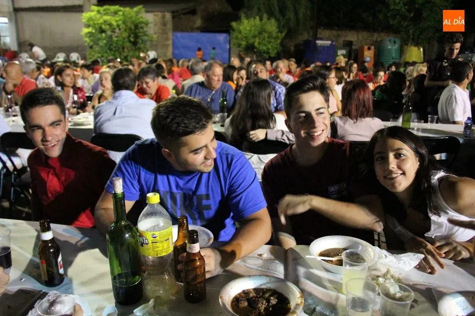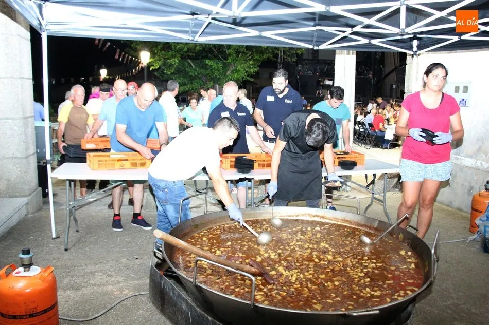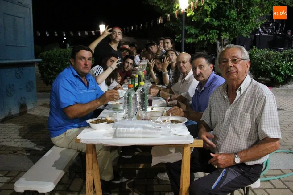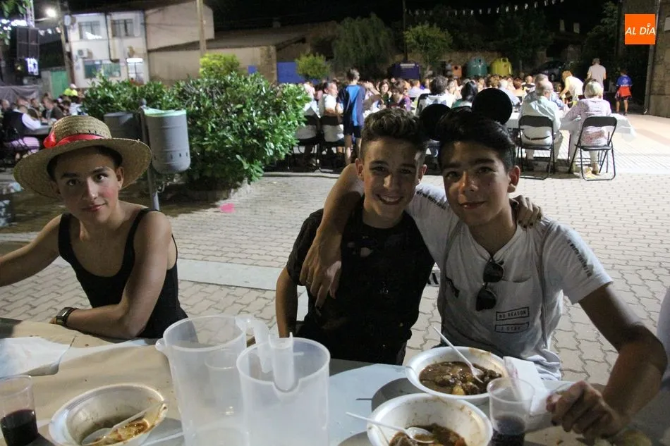 Así, tras una jornada en la que los pequeños disfrutaban por la mañana con los encierros de carretones, con ?ganado? de Carlos Huertos, y los mayores hacían lo propio con el partido de pelota, unos y otros concluían este día ocupando la plaza del Ayuntamiento para degustar una exquisita caldereta de ternera con patatas y en la que se emplearon en torno a 150 kilos de carne y 100 de patatas, además de distintas verduras para el aderezo, todo para cerca de 500 raciones de un plato típico salmantino y preparado por Paellas Jerry. Helado de postre, café y chupitos completaron el menú.