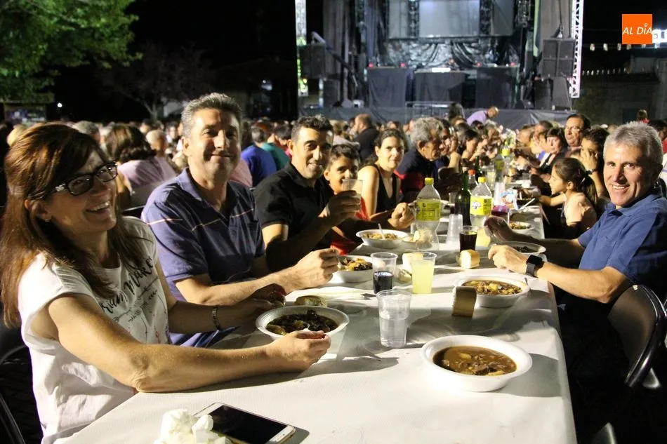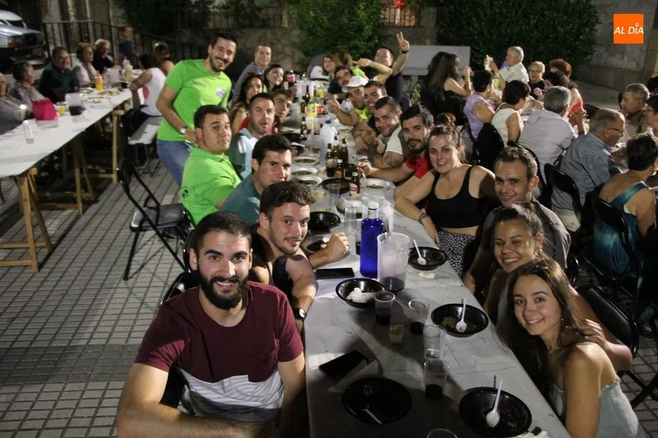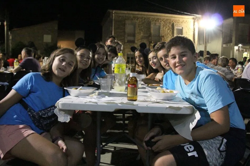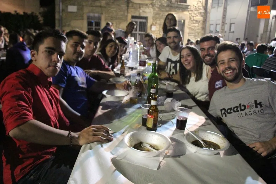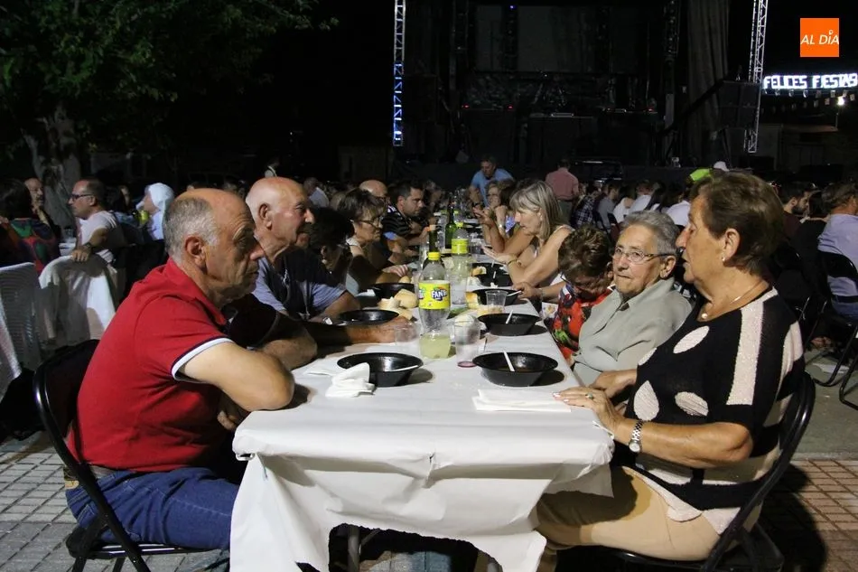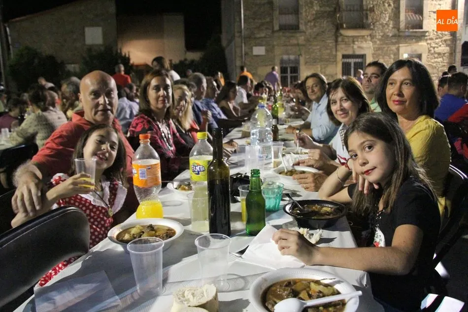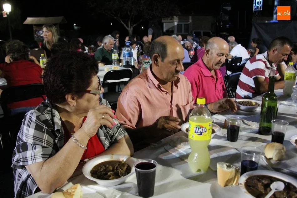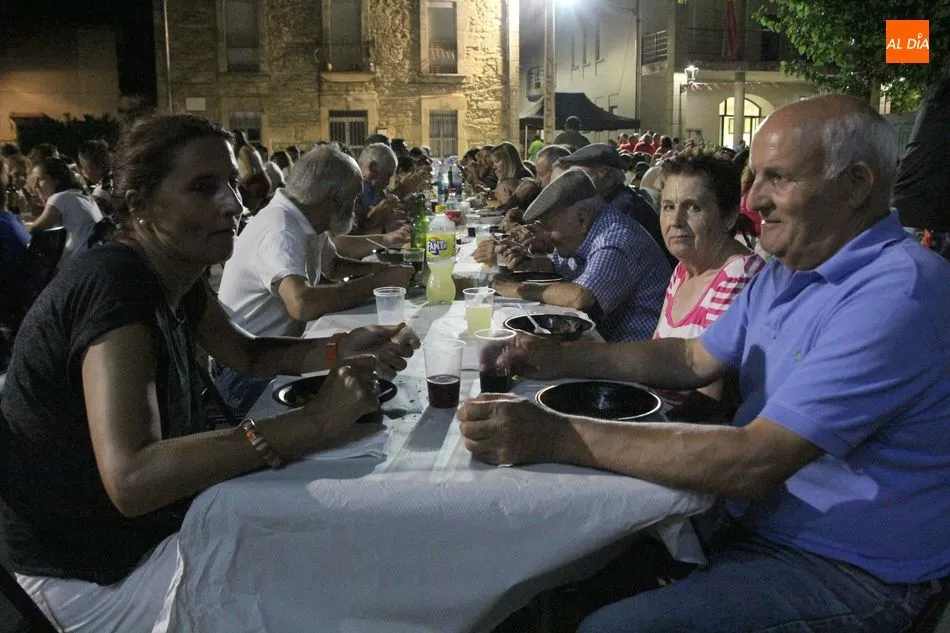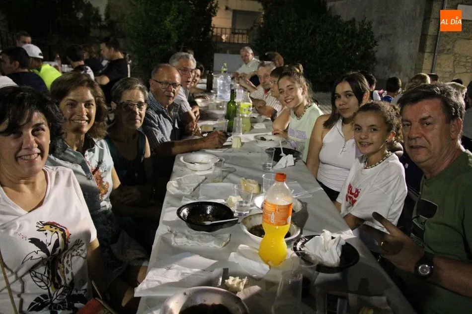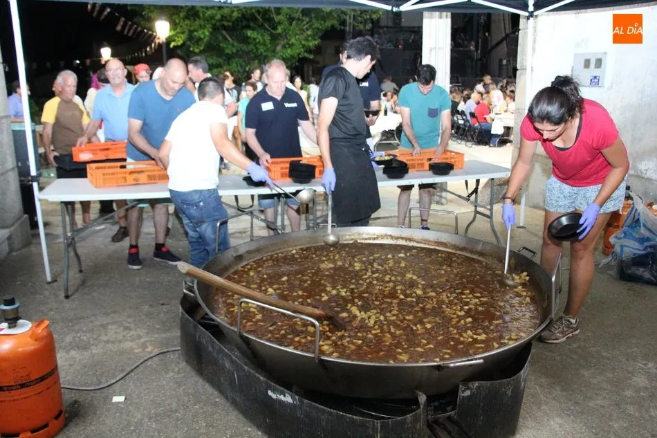 Así, tras una jornada en la que los pequeños disfrutaban por la mañana con los encierros de carretones, con ?ganado? de Carlos Huertos, y los mayores hacían lo propio con el partido de pelota, unos y otros concluían este día ocupando la plaza del Ayuntamiento para degustar una exquisita caldereta de ternera con patatas y en la que se emplearon en torno a 150 kilos de carne y 100 de patatas, además de distintas verduras para el aderezo, todo para cerca de 500 raciones de un plato típico salmantino y preparado por Paellas Jerry. Helado de postre, café y chupitos completaron el menú.
