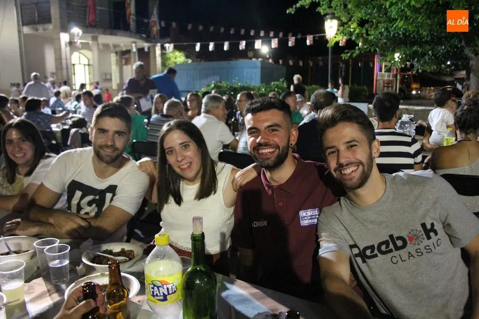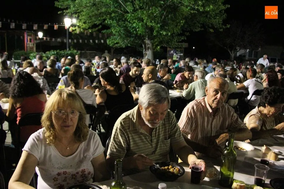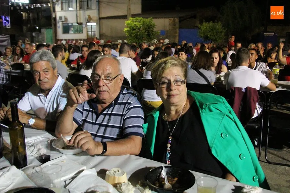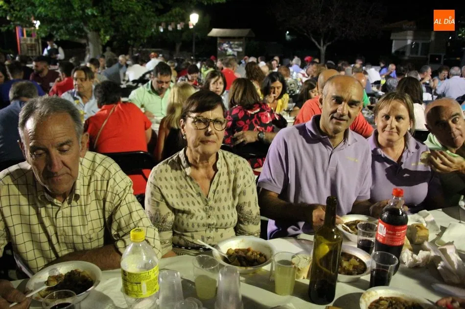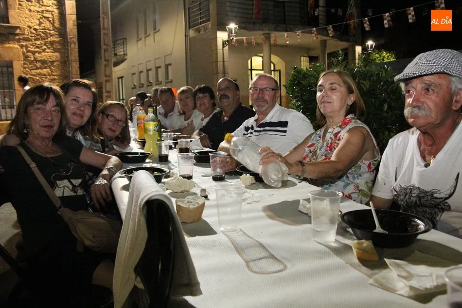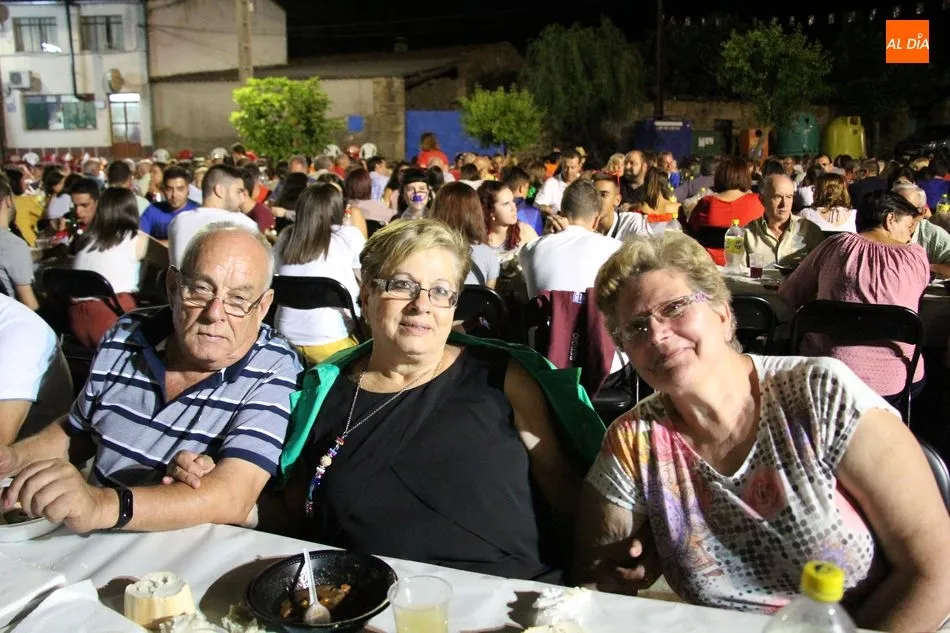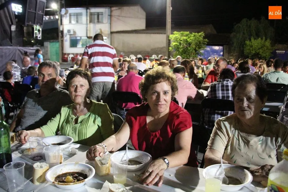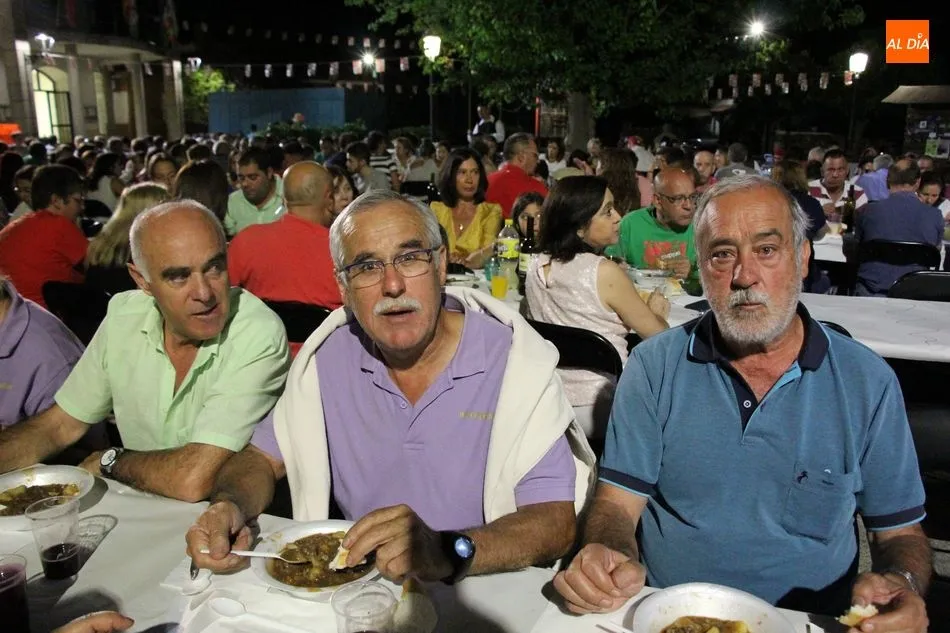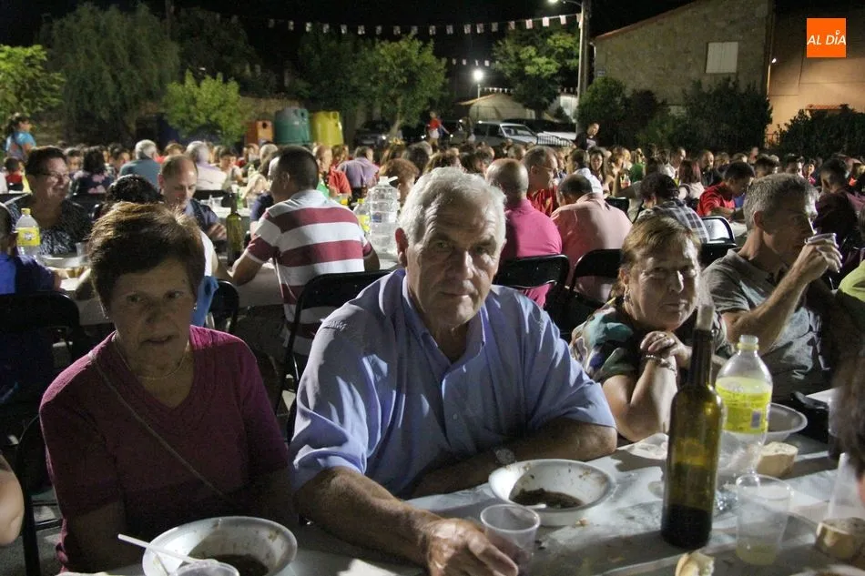 Así, tras una jornada en la que los pequeños disfrutaban por la mañana con los encierros de carretones, con ?ganado? de Carlos Huertos, y los mayores hacían lo propio con el partido de pelota, unos y otros concluían este día ocupando la plaza del Ayuntamiento para degustar una exquisita caldereta de ternera con patatas y en la que se emplearon en torno a 150 kilos de carne y 100 de patatas, además de distintas verduras para el aderezo, todo para cerca de 500 raciones de un plato típico salmantino y preparado por Paellas Jerry. Helado de postre, café y chupitos completaron el menú.
