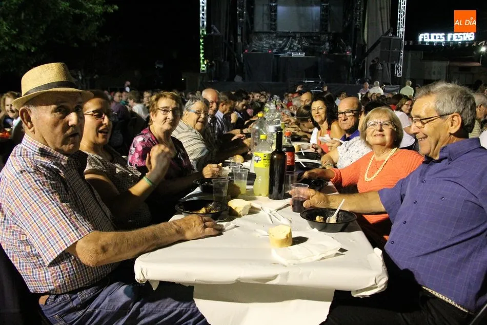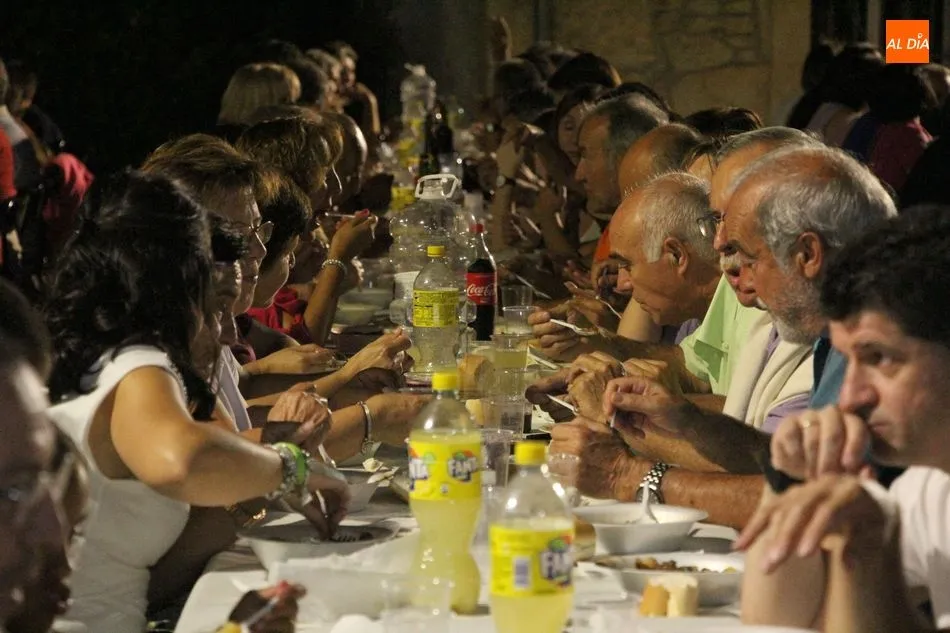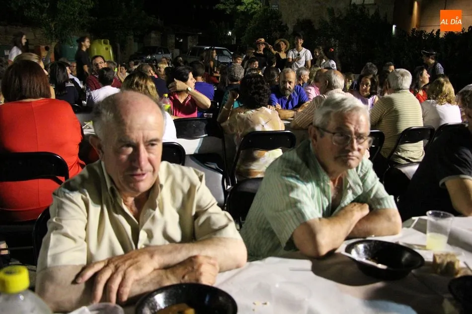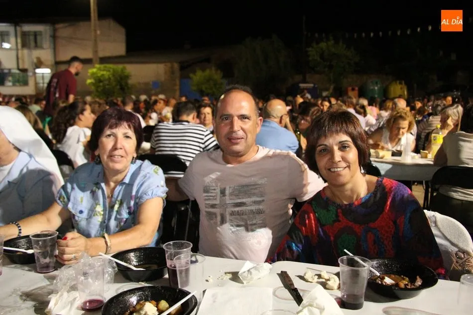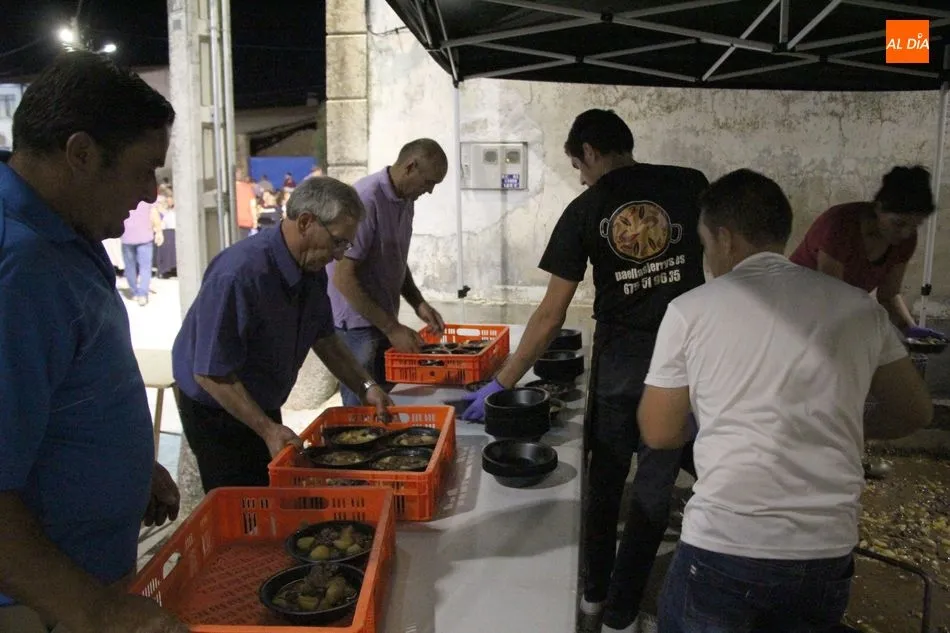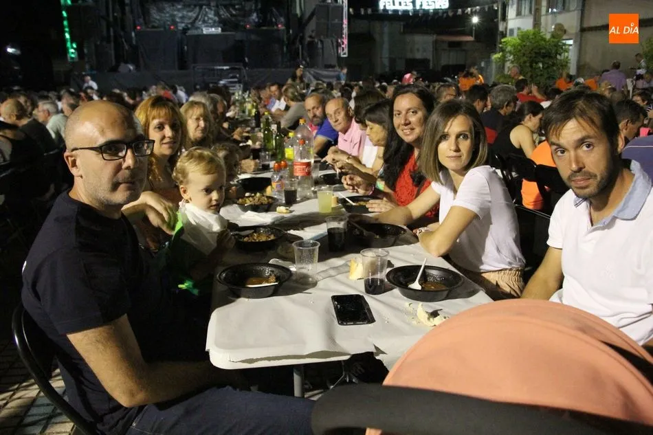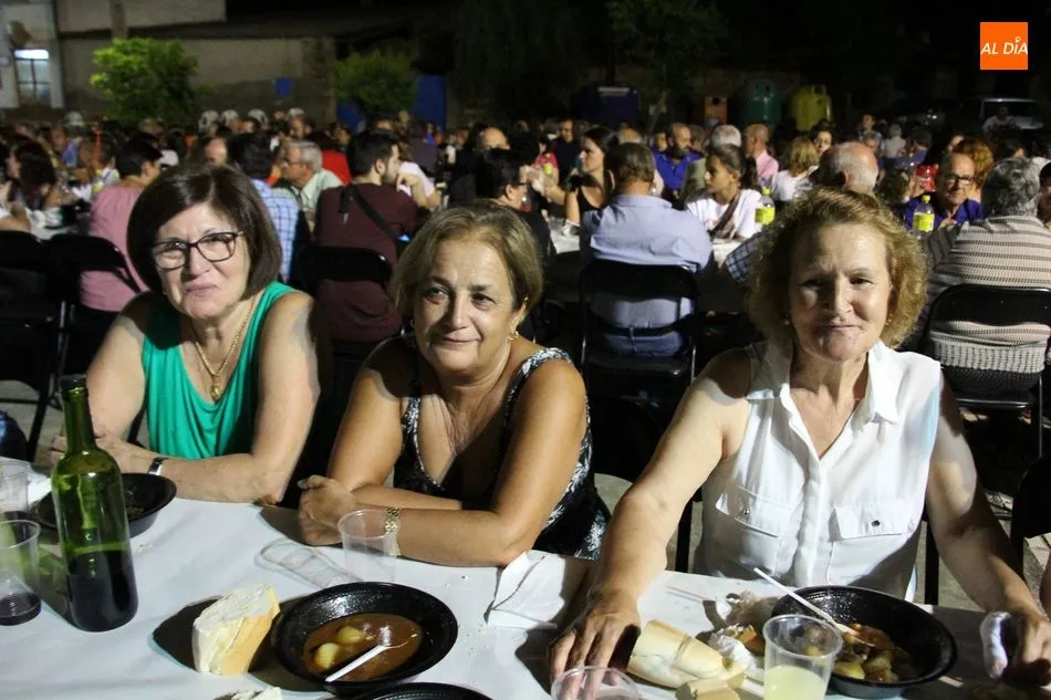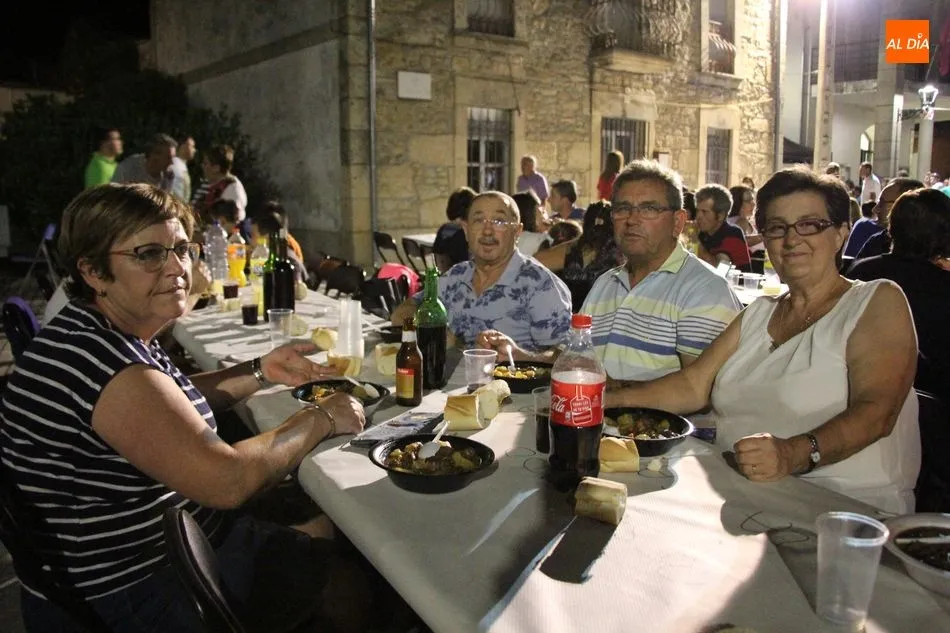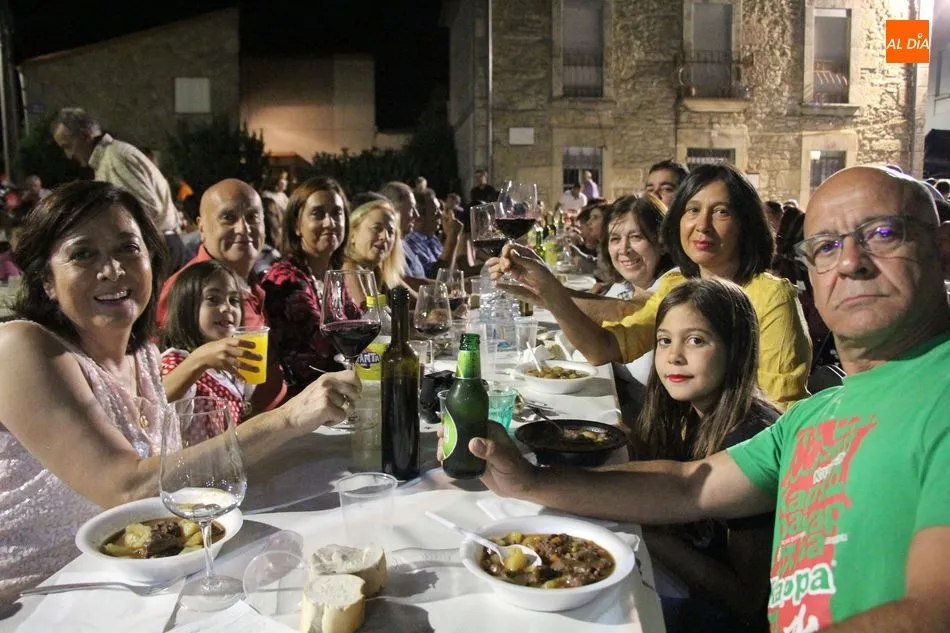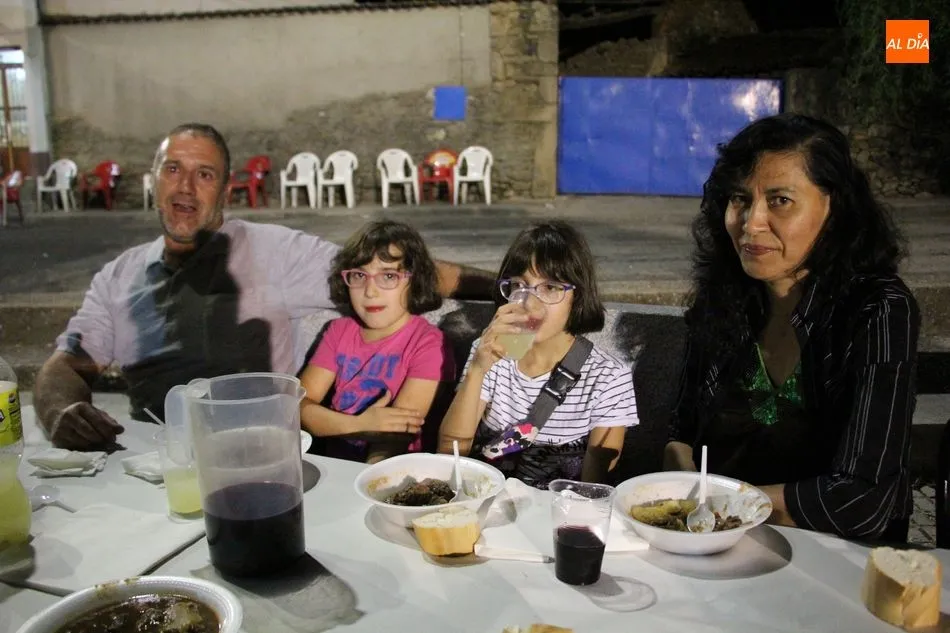 Así, tras una jornada en la que los pequeños disfrutaban por la mañana con los encierros de carretones, con ?ganado? de Carlos Huertos, y los mayores hacían lo propio con el partido de pelota, unos y otros concluían este día ocupando la plaza del Ayuntamiento para degustar una exquisita caldereta de ternera con patatas y en la que se emplearon en torno a 150 kilos de carne y 100 de patatas, además de distintas verduras para el aderezo, todo para cerca de 500 raciones de un plato típico salmantino y preparado por Paellas Jerry. Helado de postre, café y chupitos completaron el menú.