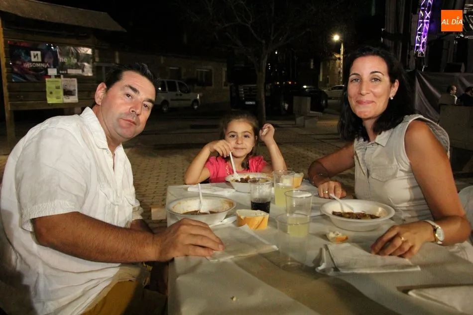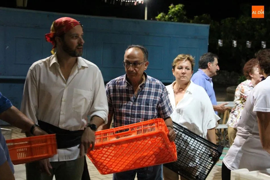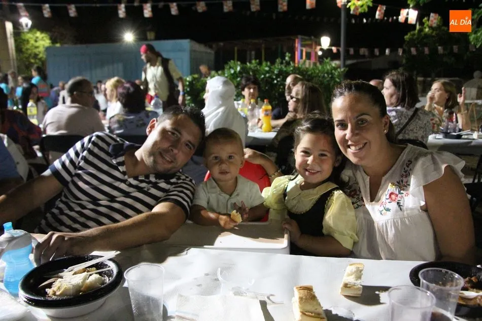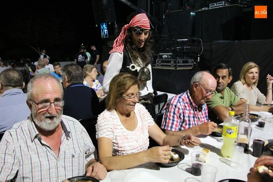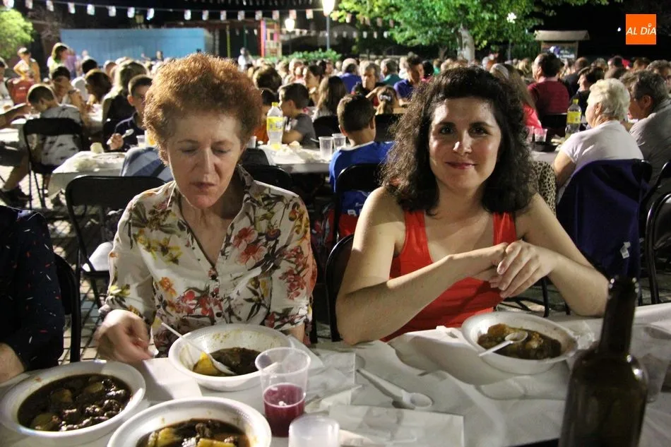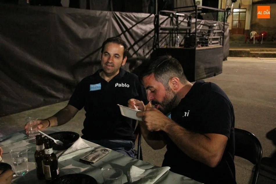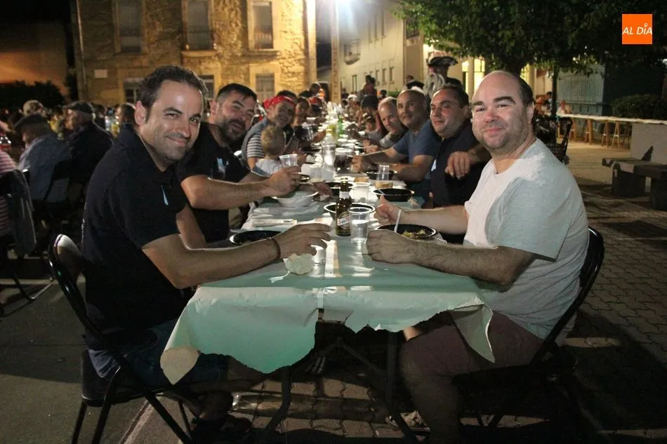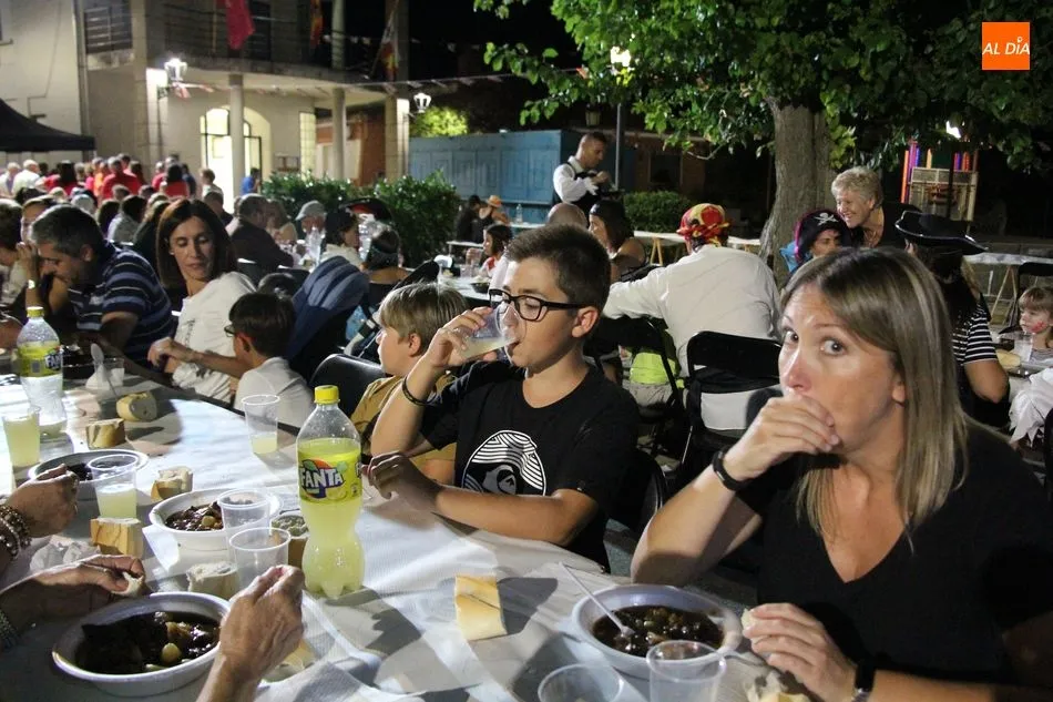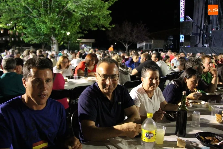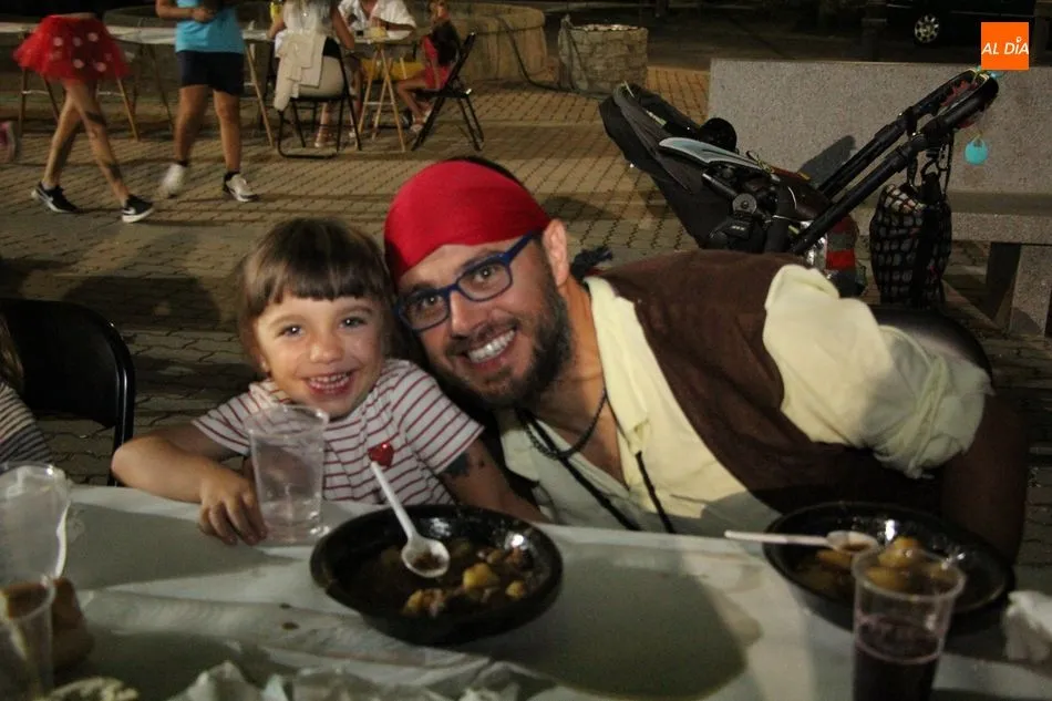 Así, tras una jornada en la que los pequeños disfrutaban por la mañana con los encierros de carretones, con ?ganado? de Carlos Huertos, y los mayores hacían lo propio con el partido de pelota, unos y otros concluían este día ocupando la plaza del Ayuntamiento para degustar una exquisita caldereta de ternera con patatas y en la que se emplearon en torno a 150 kilos de carne y 100 de patatas, además de distintas verduras para el aderezo, todo para cerca de 500 raciones de un plato típico salmantino y preparado por Paellas Jerry. Helado de postre, café y chupitos completaron el menú.
