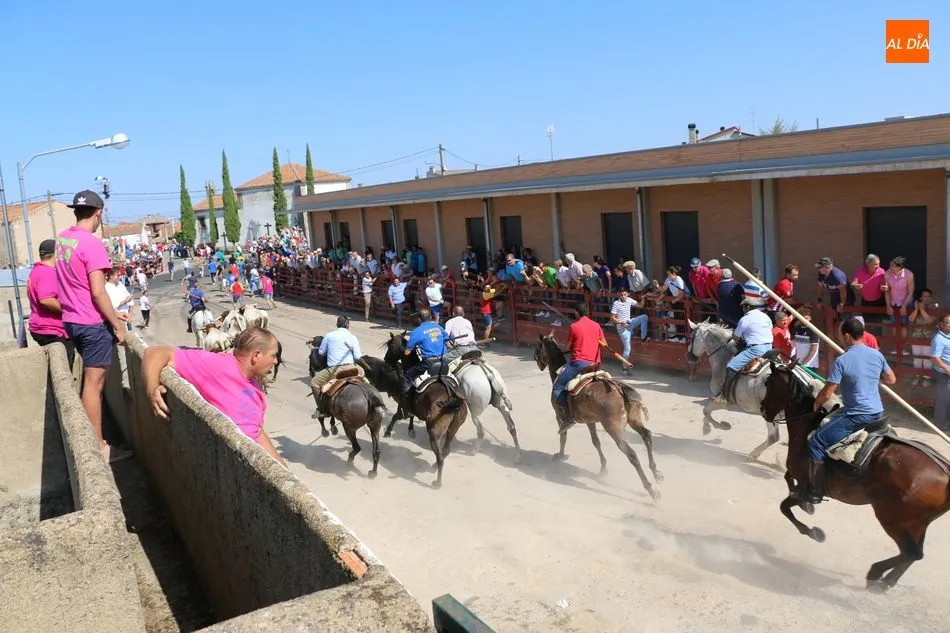 Multitudinario encierro a caballo en Villavieja de Yeltes a pesar de ser un día laborable, tal y como pasó con el celebrado el pasado miércoles en el que resultó cogido un joven por los novillos de Galache Cobaleda, en esa ocasión al estilo tradicional.