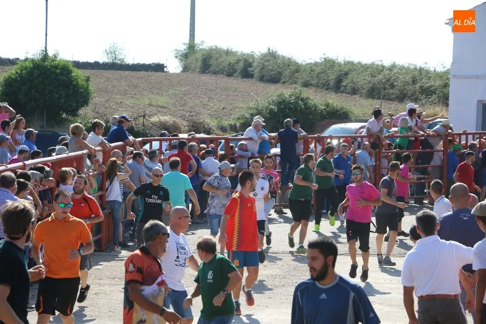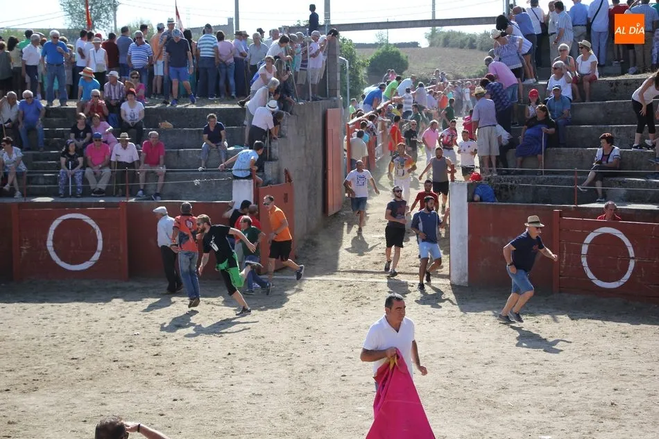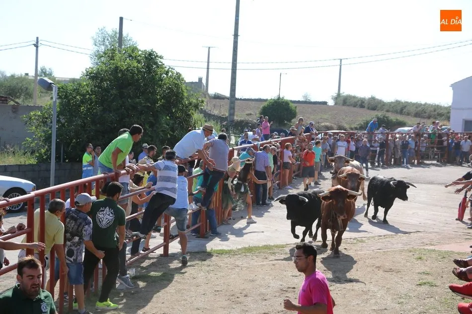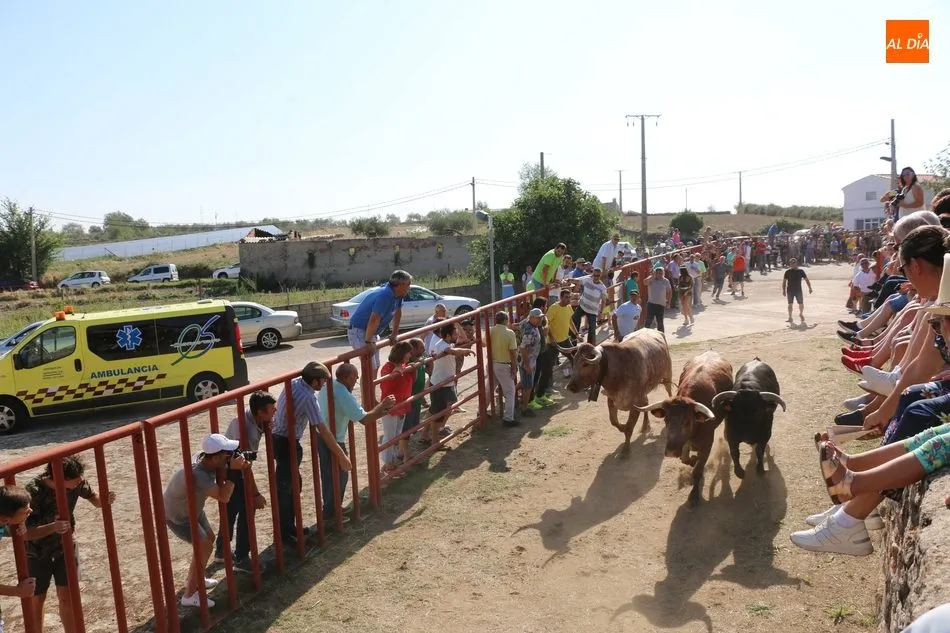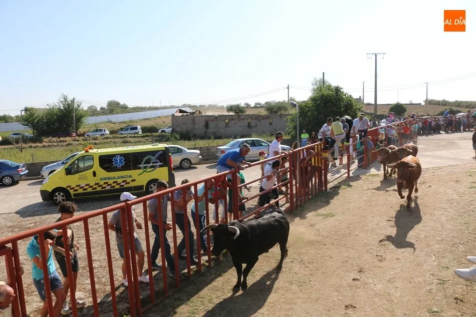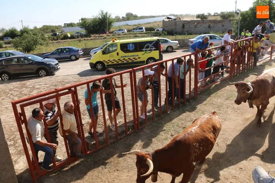 A continuación se celebraría el segundo miniencierro oficial, ahora con un novillo negro y otro jabonero, acompañados por los tres cabestros. El jabonero de Valrubio cogió ventaja al resto de la manada y se abrió hueco en la calle anunciando para la tarde una excelente novillada a partir de las seis de la tarde, festejo en cuyo cartel están anunciados los alumnos de la Escuela de Tauromaquia de Salamanca, Pablo Jaramillo y Juan Marciel, para continuar en la noche con una verbena amenizada por la orquesta La Búsqueda.
