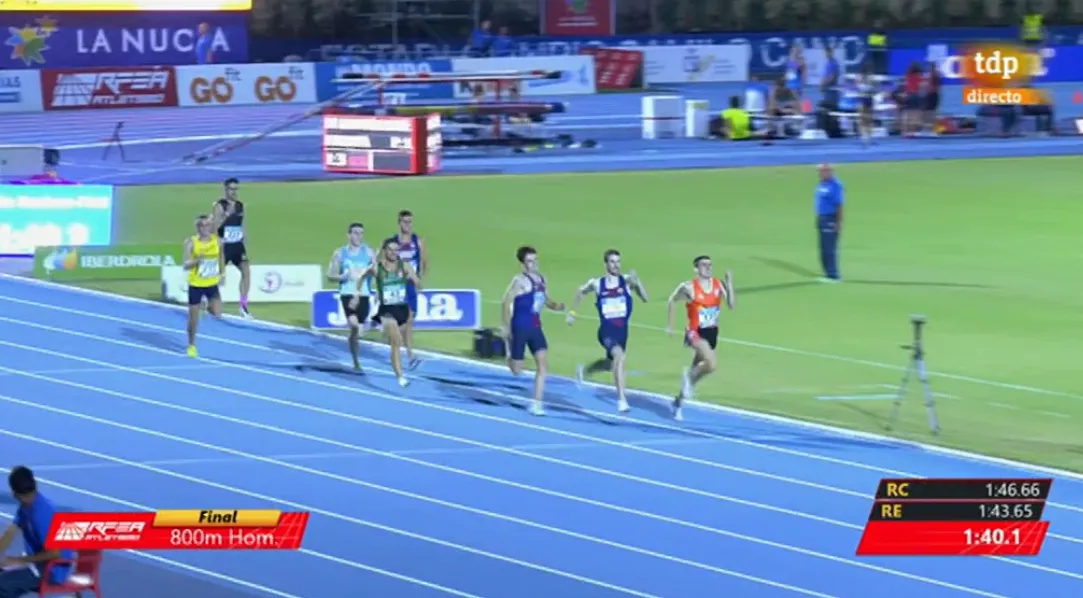 Enseguida se colocaron 1º y 2º, situación en la que entraron en la recta de meta esprintando. Parecía que Álvaro de Arriba podría llegar a superarle, pero a falta de unos 40 metros sufrió algún problema físico que le hizo no solo dejar de pelear por la victoria, sino incluso ceder la 2ª plaza, ya que le adelantó el tercer atleta en liza con mínima para el Mundial, Adrián Ben.