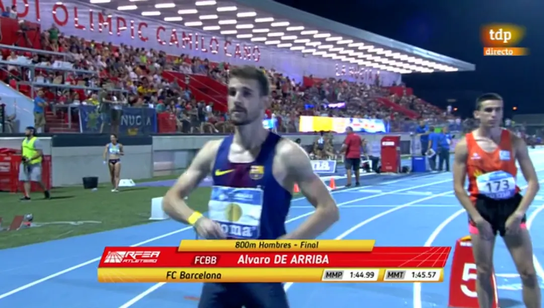 Álvaro de Arriba no pudo revalidar en la tarde del domingo en La Nucía (Alicante) la corona nacional al Aire Libre de los 800 metros lisos que consiguió hace un año en Getafe. Pese a que estuvo luchando hasta prácticamente la línea de meta por la victoria, el atleta de La Fuente de San Esteban se tuvo que conformar con la medalla de bronce, una presea que curiosamente nunca había conseguido en un Campeonato de España al Aire Libre: había ganado el oro en 2016 y 2018; y la plata en 2014, 2015 y 2017 (previamente, en 2013, no pasó de semifinales).