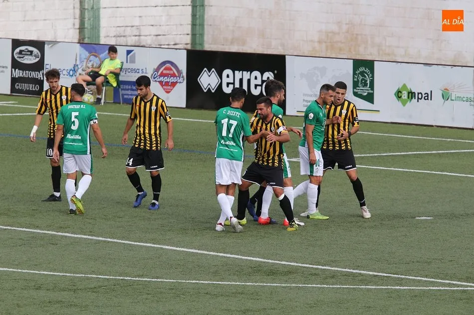En la segunda parte, el Guijuelo consiguió recortar distancia con un tanto de Carlos Rubén de volea, aunque, posteriormente, el centrocampista terminó expulsado, al igual que el lateral rumano. La losa de quedarse con 9 futbolistas sobre el campo fue demasiado pesada y los verdiblancos no pudieron igualar la contienda, por lo que los puntos volaron de tierras charras.