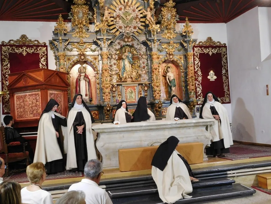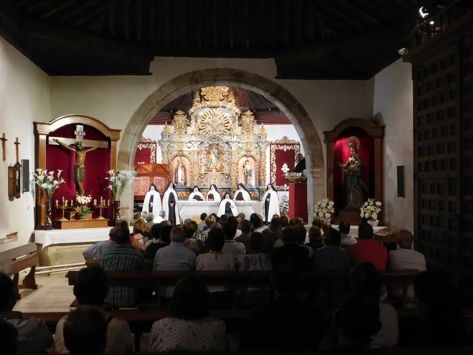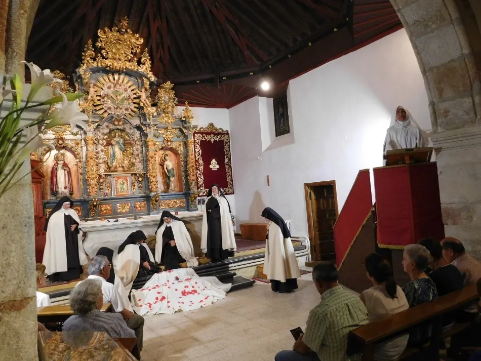 Hasta la parroquia de san Fabián y san Sebastián de Arapiles, los componentes de este grupo de aficionados al teatro trasladan el material necesario para que la Capilla Mayor que conserva vestigios mozárabes como su precioso artesonado, vea transformado su Altar Mayor en el escenario idóneo donde nuevamente la batalladora y revolucionaria vida de aquella monja vuelva a ser contada. Unos diálogos tan conocidos para algunos y siempre nuevos para todos suenan como cañonazos que alertan de cómo tan sólo una mujer creó un entorno propicio para dar lugar a un nuevo mundo, y tuvo la capacidad de dejarlo reflejado para la Historia de tiempos futuros gracias a su incontenible y lúcida pluma, aliada de una estrategia nacida de su formidable capacidad intelectual. Desde el baluarte de su púlpito, la castrante Inquisición no logra conquistar su objetivo, pero la música renacentista que nace del órgano de Salinas recuerda al público que el arte y magistralidad de algunas mentes conquistan el territorio de la Historia, que es universal.