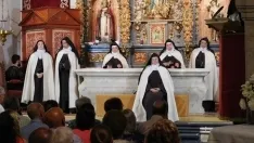 Procedente de la cercanísima población de Las Torres, en la que la víspera fue puesta en escena su singular obra de teatro, el grupo ?Lazarillo de Tormes?, siempre de camino y con el beneplácito de la Diputación charra, llega al pueblo vecino para contar también de manera única su especial historia. Es la de aquella monja del XVI, cuya faceta de ser humano, de mujer con los pies en la tierra que le tocó habitar, ha conquistado a tantos espectadores, absortos en lo visto y transformados y transportados a otra época por la especial batalla que la figura de Teresa de Jesús entabla a través de su único ejército de hermanas carmelitas para rebelarse ante el opresor, y con tan sólo el uniforme de sus pesados hábitos de estameña.