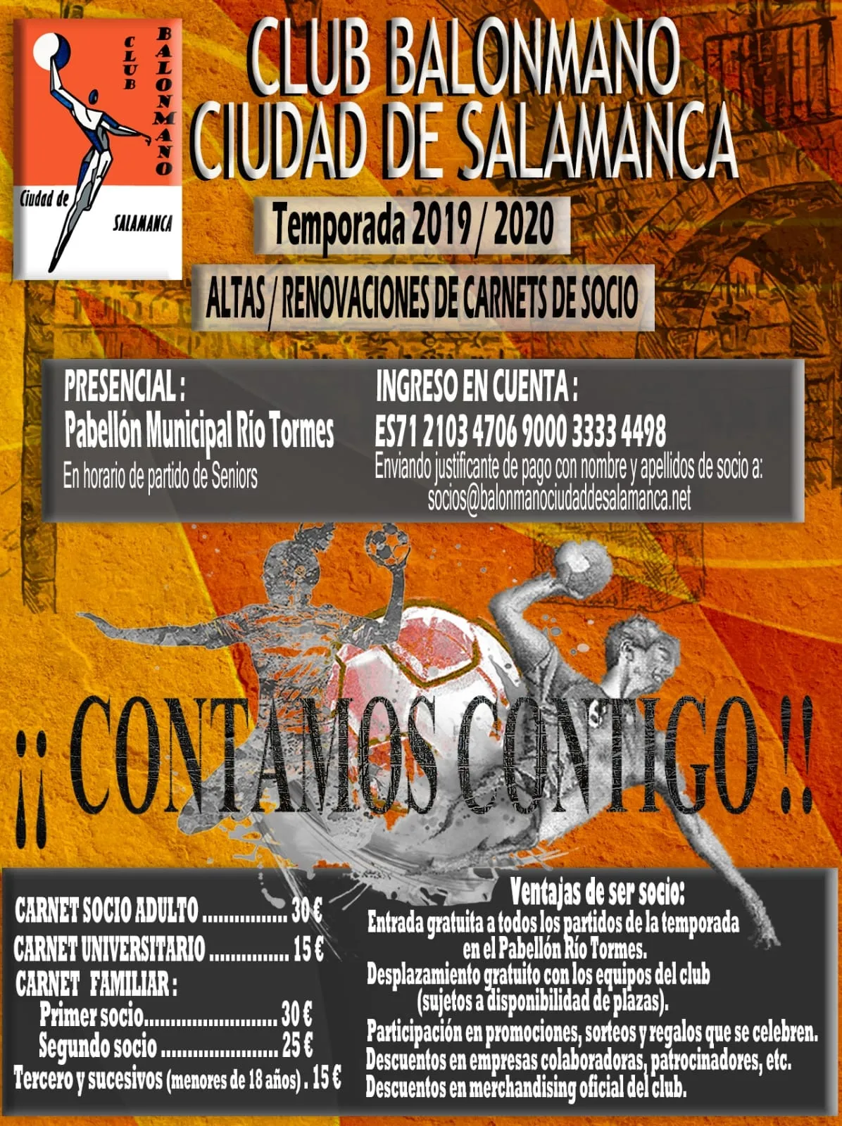 Ya ha comenzado la campaña de renovación y captación de nuevos socios en el BM Ciudad de Salamanca. Por ello, el club quiere dar las gracias a todas las instituciones y aficionados que hasta el momento les ha apoyado con su esfuerzo, ilusión y compromiso.