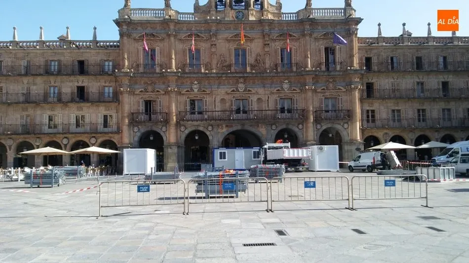 La programación musical de las Ferias y Fiestas 2019 incluye un buen número de conciertos gratuitos en la Plaza Mayor. Por eso, este lunes, operarios municipales empezaban a preparar el ágora para esas actuaciones que contarán con una gran respuesta del público. En este sentido, se han retirado los bancos y se ha comenzado a montar el escenario.