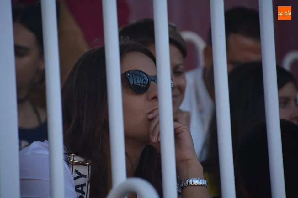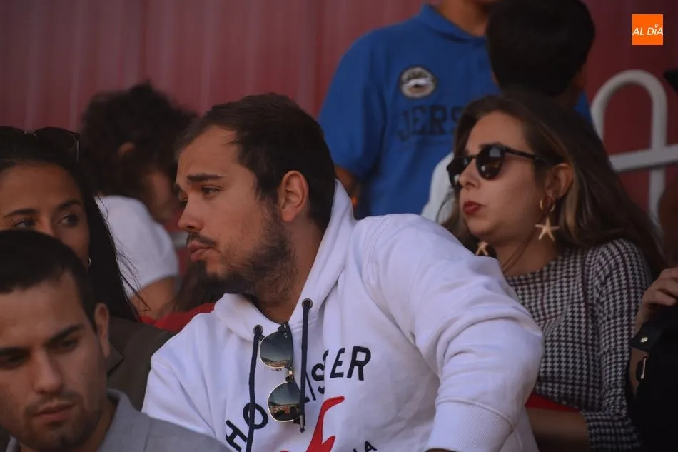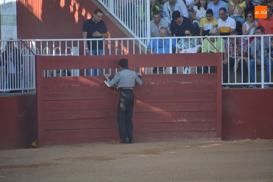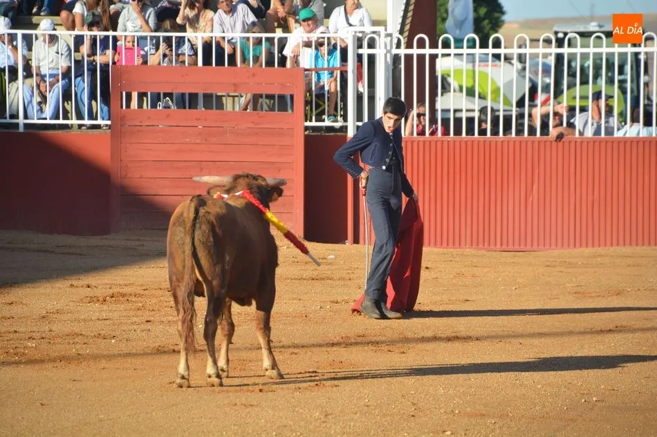 Segunda de las jornadas del certamen de Escuelas Taurinas en clases prácticas, celebrada este viernes en el Anillo de Exhibiciones del Recinto Ferial, con novillos de la ganadería de Manolo Gimeno para los alumnos Jesús de la Calzada y Fabio Jiménez, de la Escuela de Tauromaquia de Salamanca, y de Manuel Caballero, de la Escuela de Tauromaquia de Albacete. Una tarde que comenzó con un pequeño susto cuando uno de los novillos se metió dentró de un burladero.