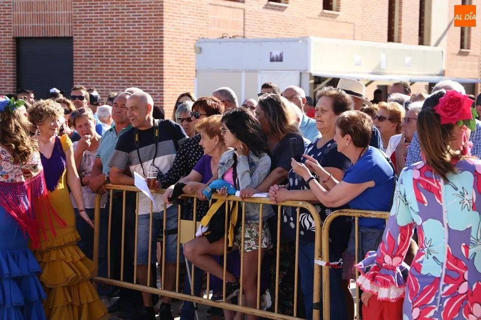 El pregón estuvo precedido, como es costumbre, por un recorrido desde el centro social. El séquito estuvo encabezado por un tamborilero y un grupo de mujeres vestidas con trajes charros, seguidos por un grupo de sevillanas, peñas y vecinos.