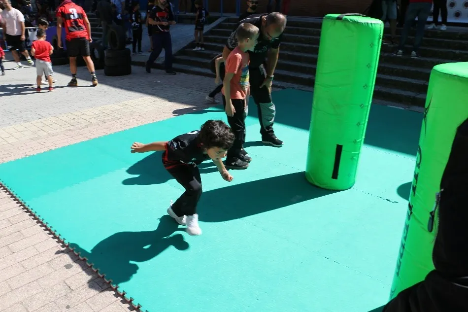 Aprender a pasar el característico balón de rubgy, hacer placajes o sortear defensas rivales son las pruebas a las que están invitados niños y mayores. También se tiene la oportunidad de convertirse en socio del club o en colaborador de la entidad. La actividad continuará a lo largo de esta tarde.