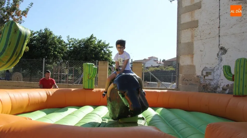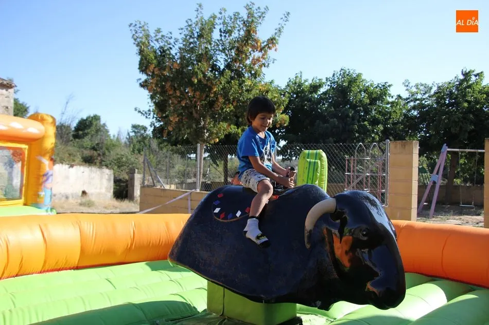Con un cambio de última hora, para aprovechar las horas más templadas de la tarde de este sábado, los niños y niñas de Fuenteliante se divertían con la fiesta de la espuma, para una vez ya secos y cambiados, disfrutar el resto de la tarde con los hinchables. Probando la destreza con el toro mecánico, la puntería de los penaltis o el equilibrio en el castillo, los más pequeños celebraban su propia jornada festiva.