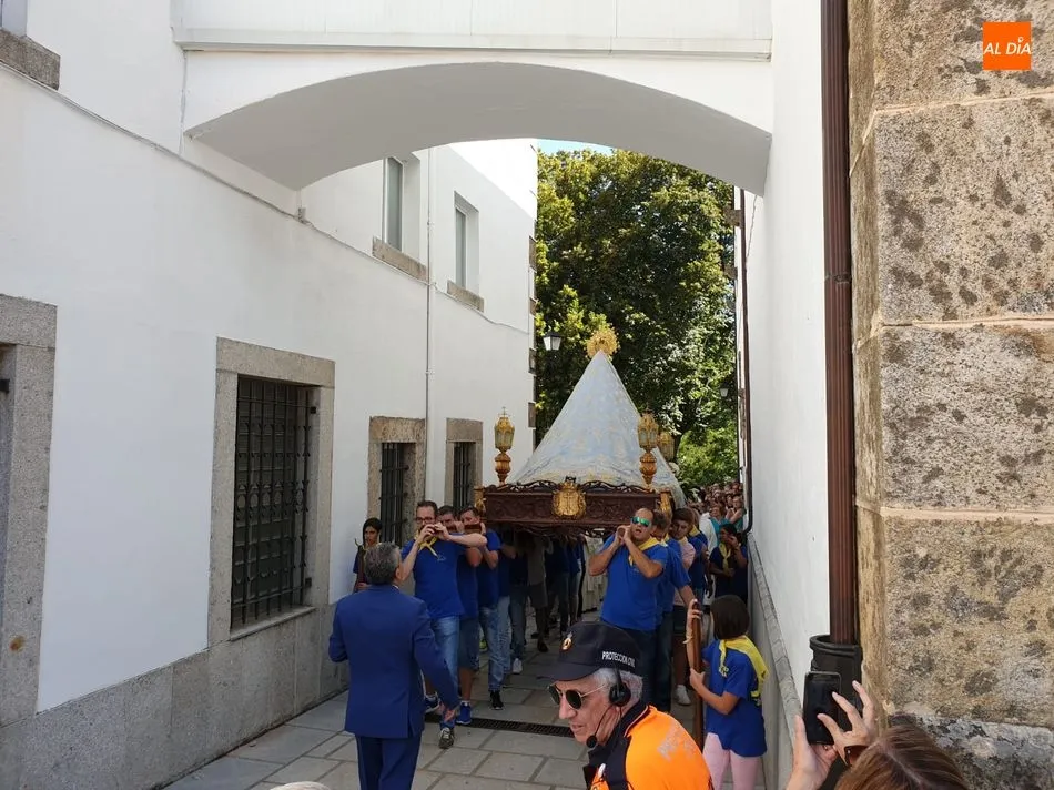 Pese a que ha habido problemas con el transporte público para subir a la romería del Día de la Virgen del Castañar, esta se ha celebrado sin más incidencias con la tradicional misa de campaña en la Plaza de los Tilos y la posterior procesión hasta el mirador para que la Patrona de los bejaranos bendijera su ciudad y su comarca, encabezada por la alcaldesa, Elena Martín Vázquez y por el resto de autoridades civiles y militares.
