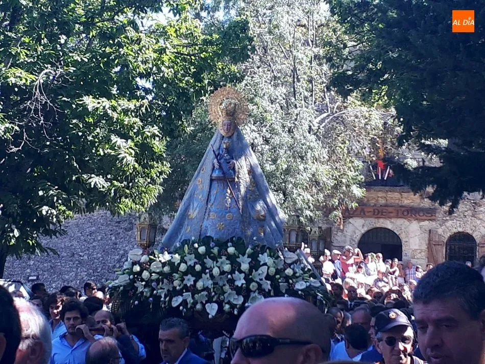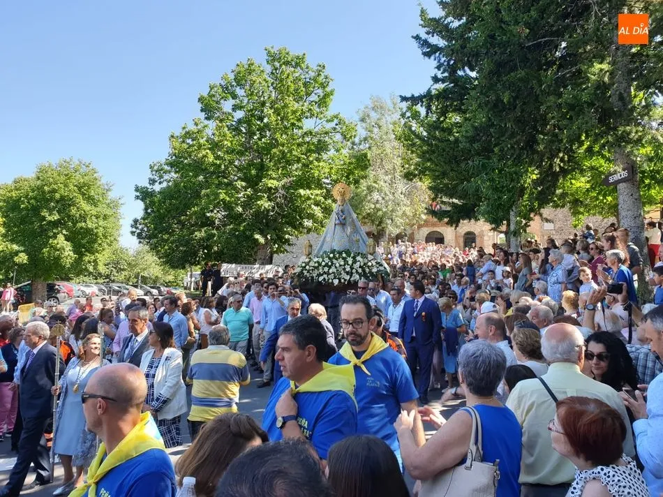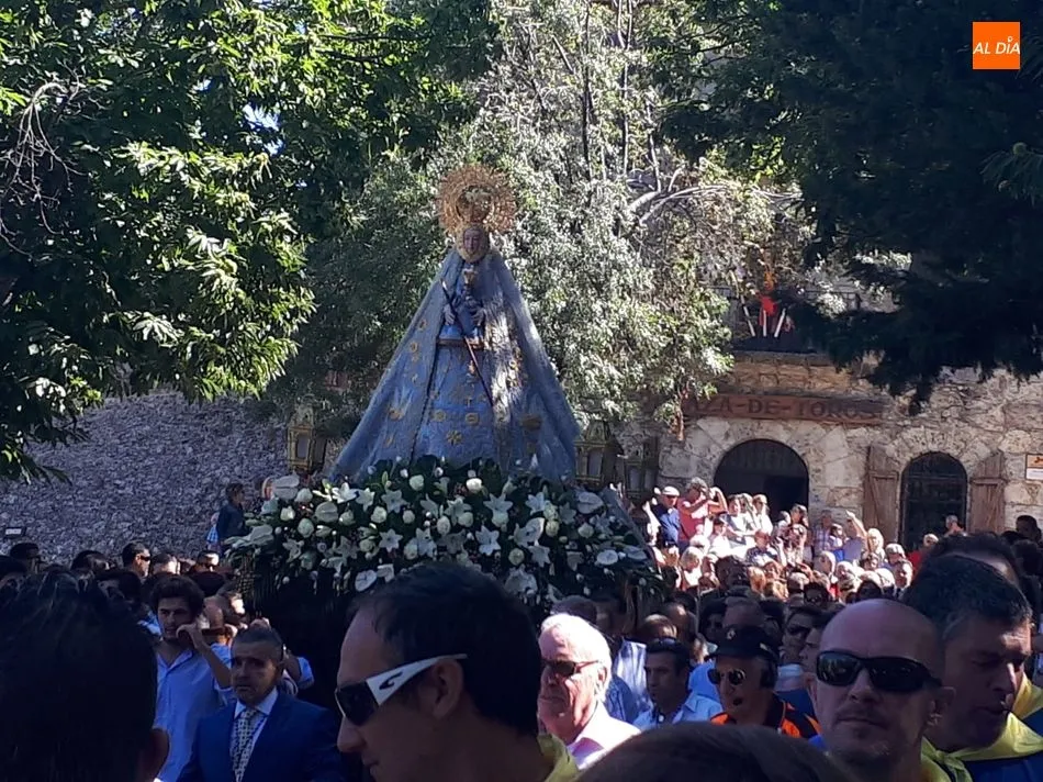 La procesión de la Virgen ha sido presidida este año por la alcaldesa Elena Martín y el resto de la corporación municipal, que han acompañado a la imagen hasta el mirador desde el que se bendice la ciudad y la comarca