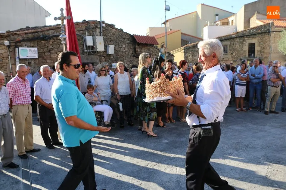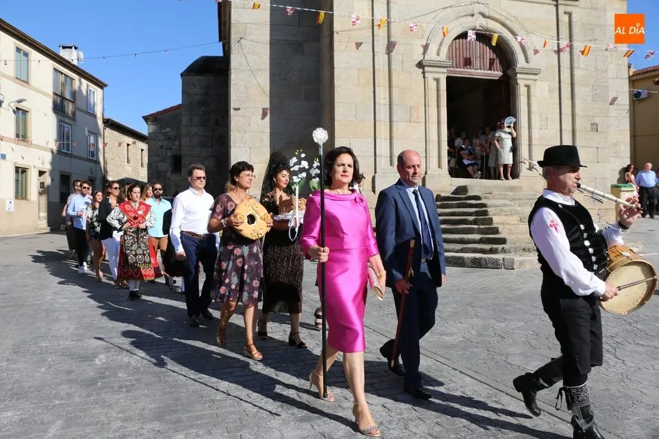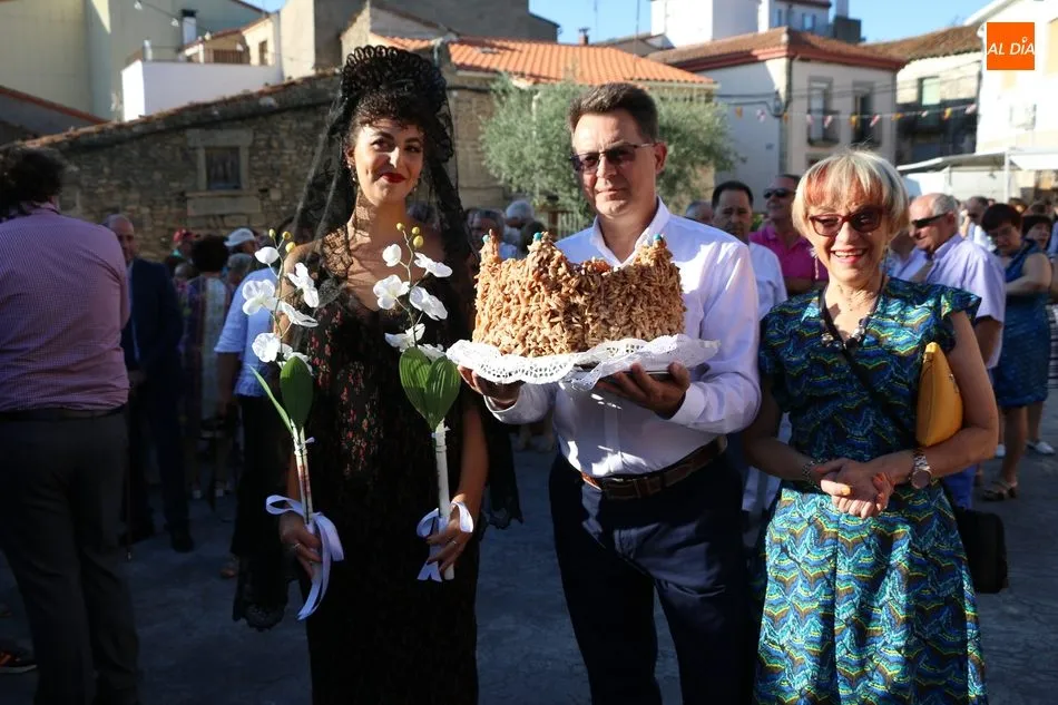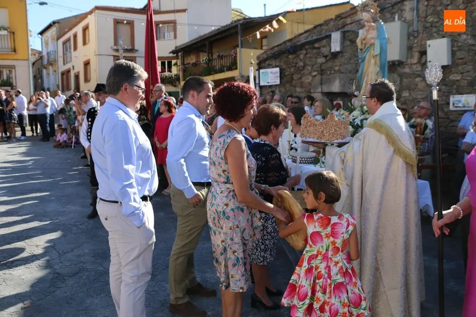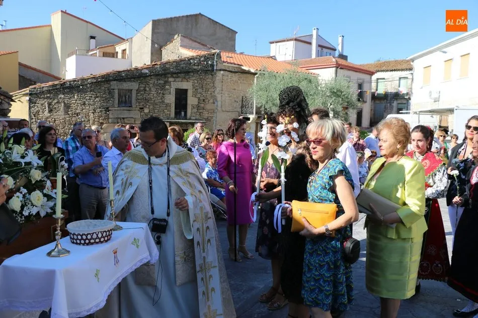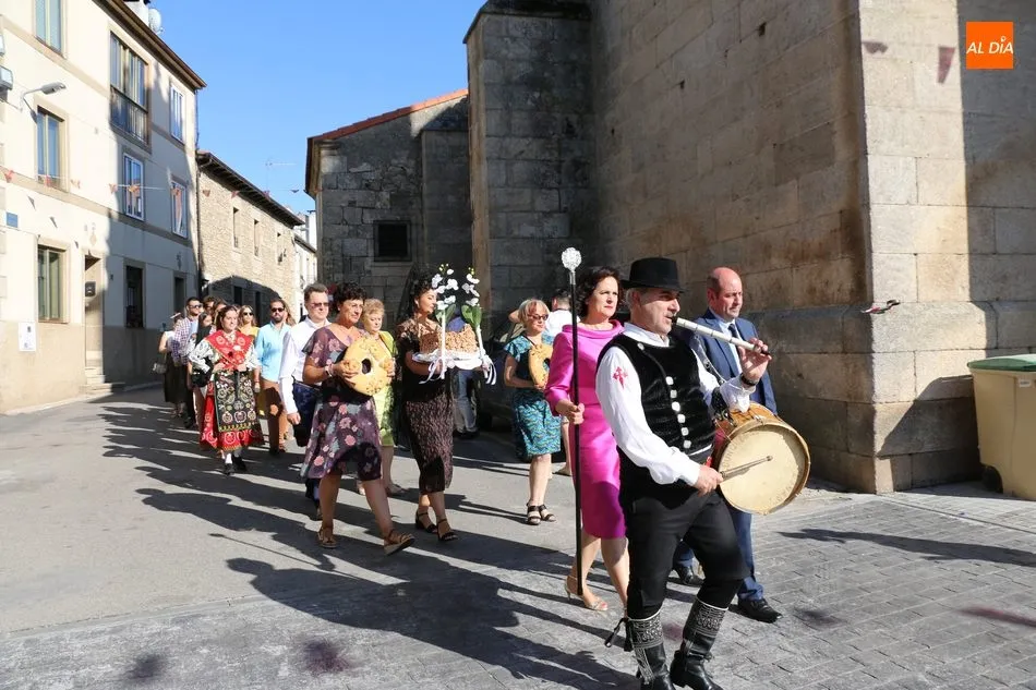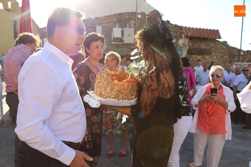 Bajo el pasacalles interpretado por Leonardo Alburquerque, tamborilero de Barruecopardo, el alcalde de la localidad, Ismael García, empuñando el bastón municipal, acompañaba a la mayordoma de este año, Rosa García, para recibir a cada una de las madrinas en sus respectivas calles. Con el saludo a modo de reverencia, comenzaba el pasacalles de regreso a la Plaza, para concluir con la ofrenda de sus roscas a la patrona, acto oficiado por el párroco Miguel ángel García y en el que cada Madrina se hacía acompañar de sus familiares.