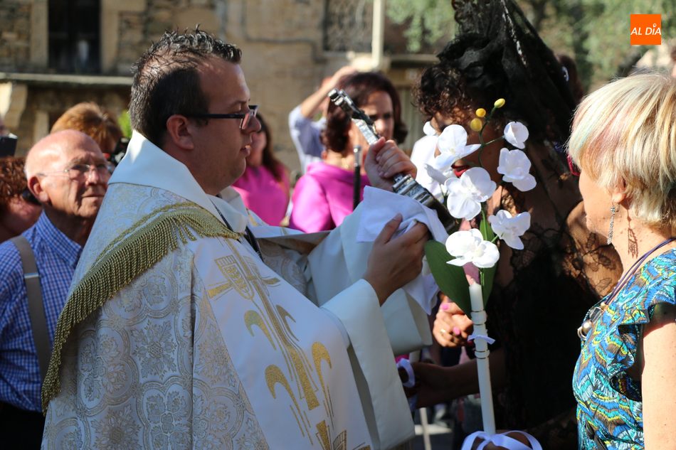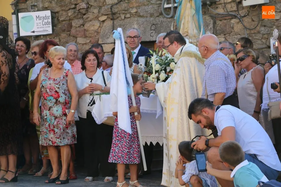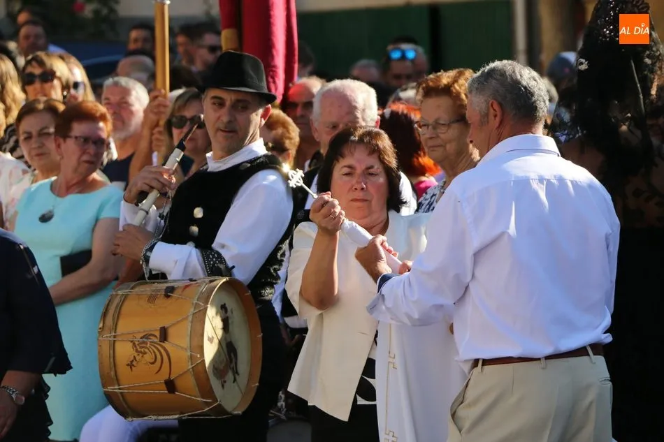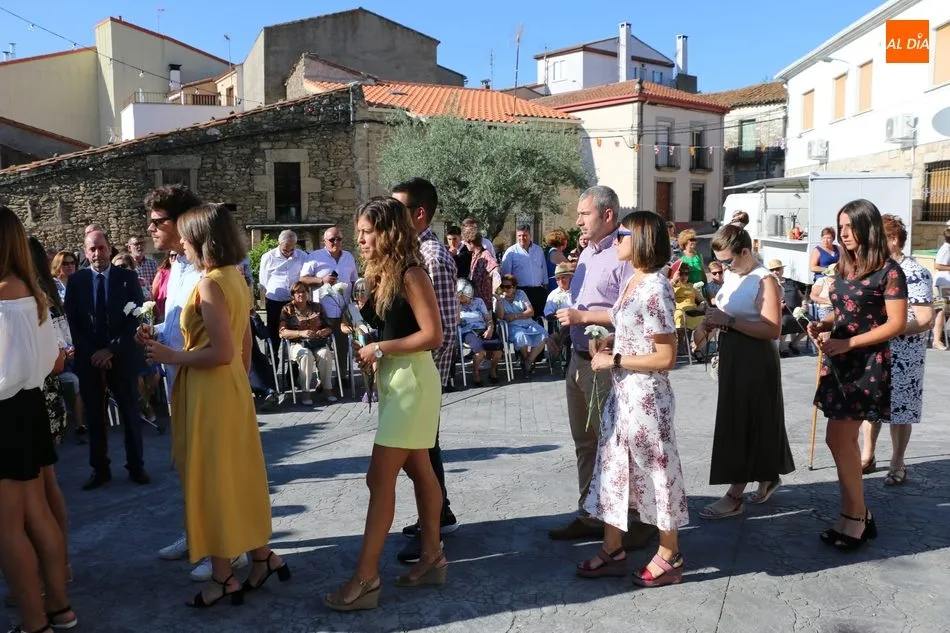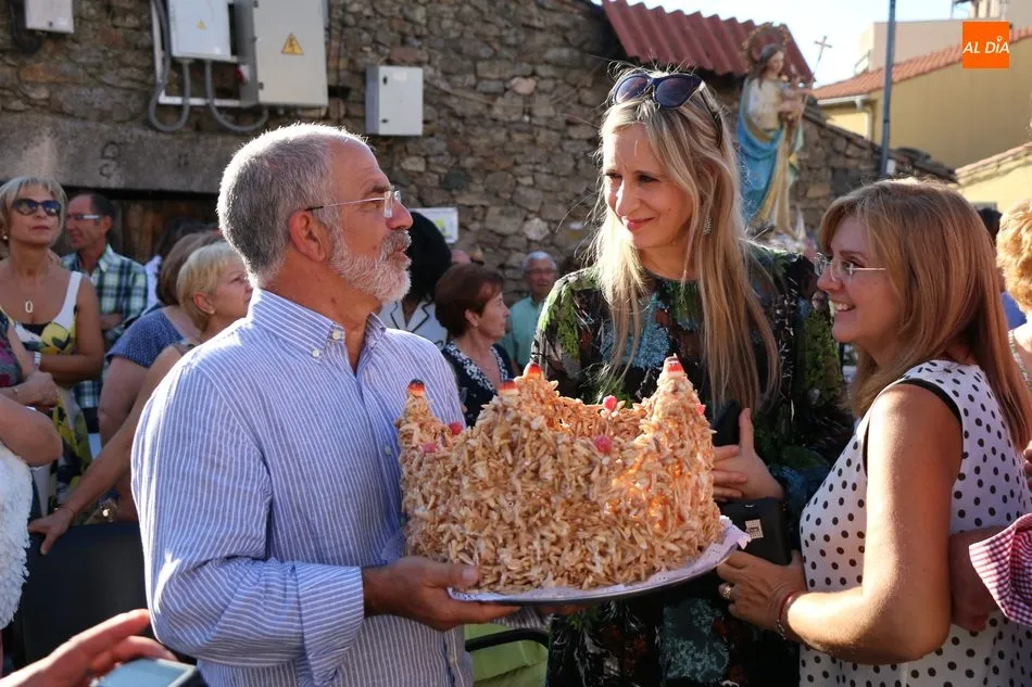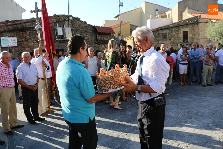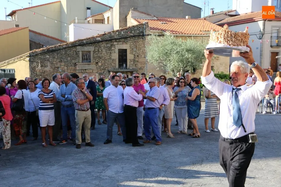 Bajo el pasacalles interpretado por Leonardo Alburquerque, tamborilero de Barruecopardo, el alcalde de la localidad, Ismael García, empuñando el bastón municipal, acompañaba a la mayordoma de este año, Rosa García, para recibir a cada una de las madrinas en sus respectivas calles. Con el saludo a modo de reverencia, comenzaba el pasacalles de regreso a la Plaza, para concluir con la ofrenda de sus roscas a la patrona, acto oficiado por el párroco Miguel ángel García y en el que cada Madrina se hacía acompañar de sus familiares.