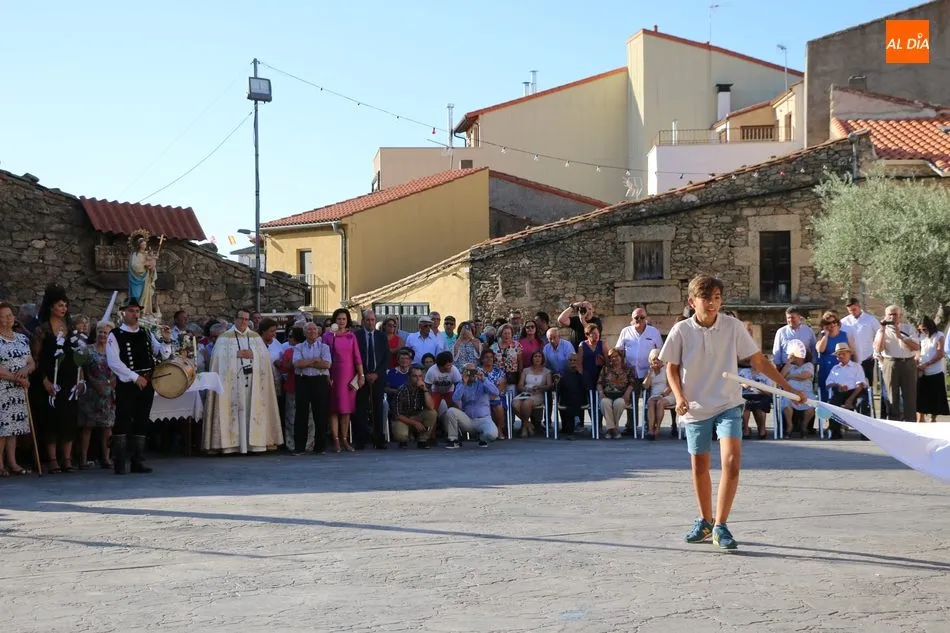 Tras finalizar el tradicional baile de recién casados, llegaba el baile de la bandera, danza que fue interpretada por no pocos vecinos, y a la que cada año se van sumando mujeres y niños, lo que garantiza que esta tradición se siga manteniendo durante mucho tiempo. Cada cual hizo su propia interpretación de las notas que salían de la gaita y el tambor del tamborilero de Barruecopardo, pero la intención y la voluntad es lo que cuenta.