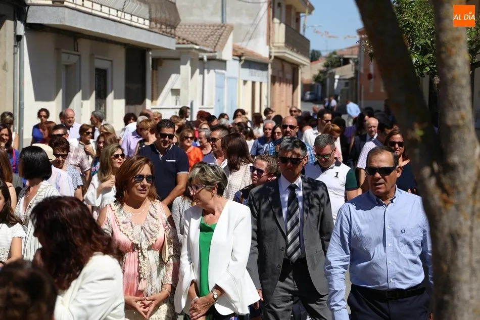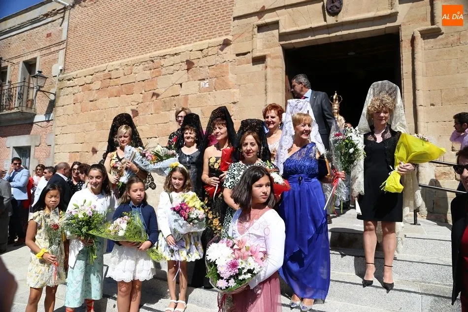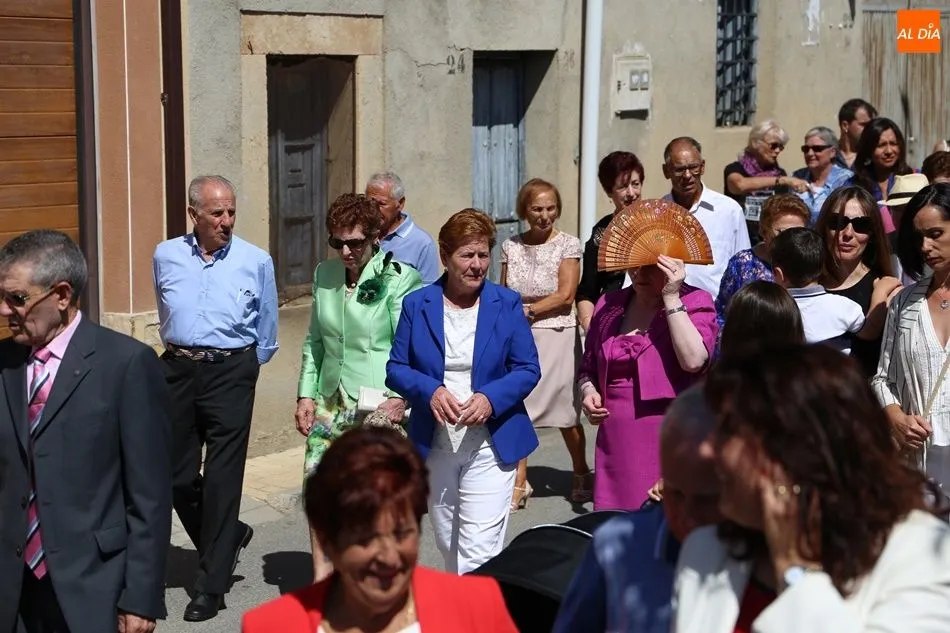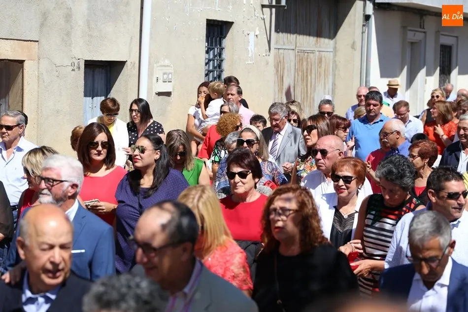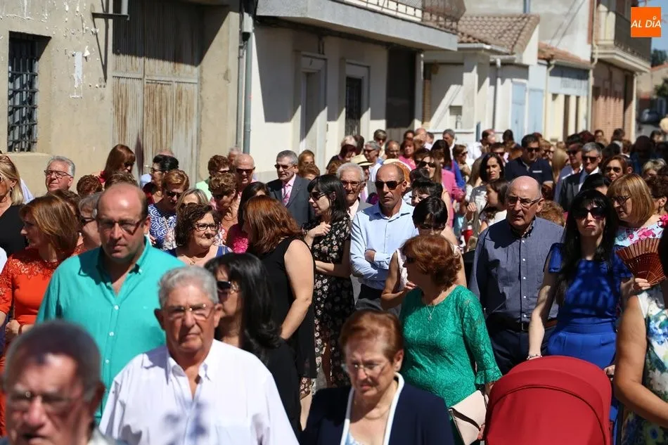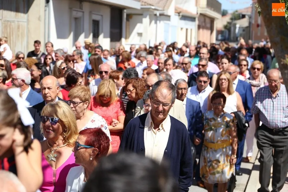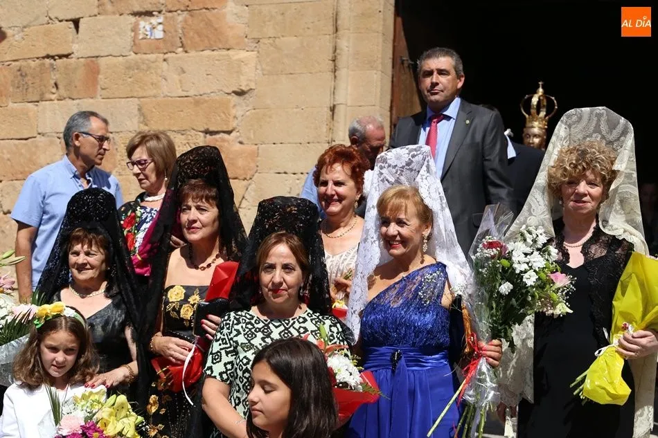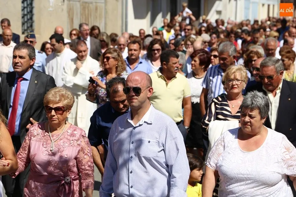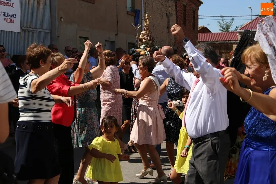 Minutos antes de las 13 horas de este domingo, casi una hora después del inicio de la misa en honor a la Virgen de la Vega, se abrieron las puertas de la iglesia de Villoria para el comienzo de la procesión de la patrona. Cientos de personas participaron en los actos religiosos en el día grande de las fiestas patronales.