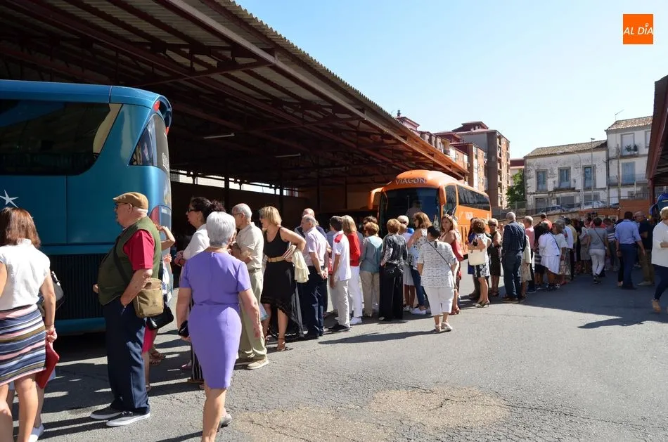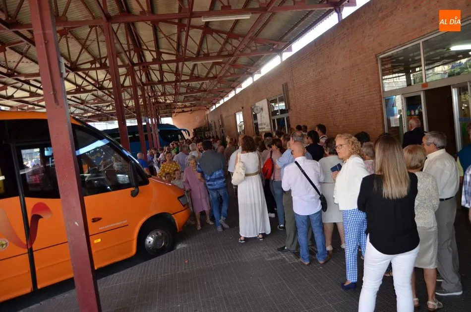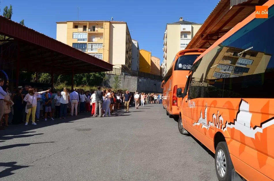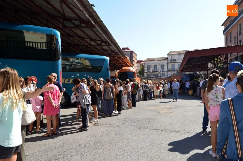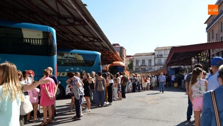 Caótica mañana en la estación de autobuses de Béjar y en la Plaza de España por la escasez de autobuses que tenían que trasladar a los bejaranos y visitantes hasta el paraje de El Castañar. Miles de personas esperando en la estación, para un autobús y dos microbuses de la empresa Viagón, que a todas luces se han quedado pequeños para la cantidad de personas que han esperado las interminables colas, unas para comprar los billetes y otras para subir a los pocos vehículos habilitados.