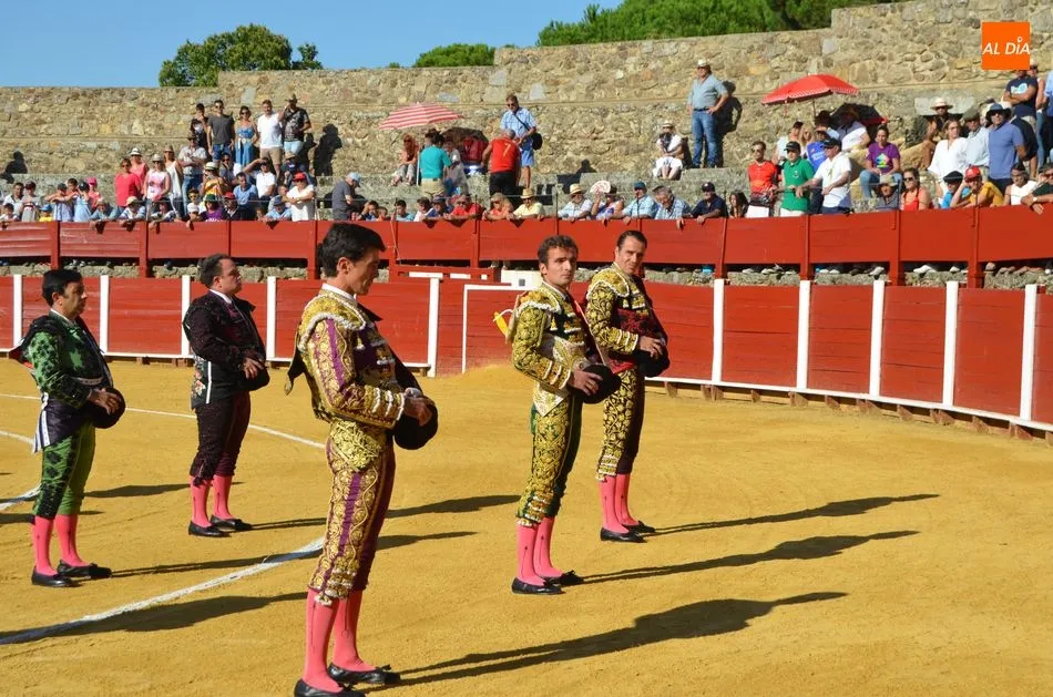 Tras la vuelta al ruedo de la Virgen de los Toreros a hombros de la Asociación de Amigos de la Plaza de Toros de Béjar, hasta ser colocada en la Pedrera de La Virgen, restos rectangulares del antiguo coso de 1711 retratado en el cuadro del pintor de corte Ventura Lirios; da comienzo el paseíllo pasadas las seis de la tarde, con Uceda Leal sin montera en el albero. La comitiva encabezada por los tres matadores se dirige frente a la imagen mariana para rezarle y pedirle protección, mientras de fondo suena el himno nacional.