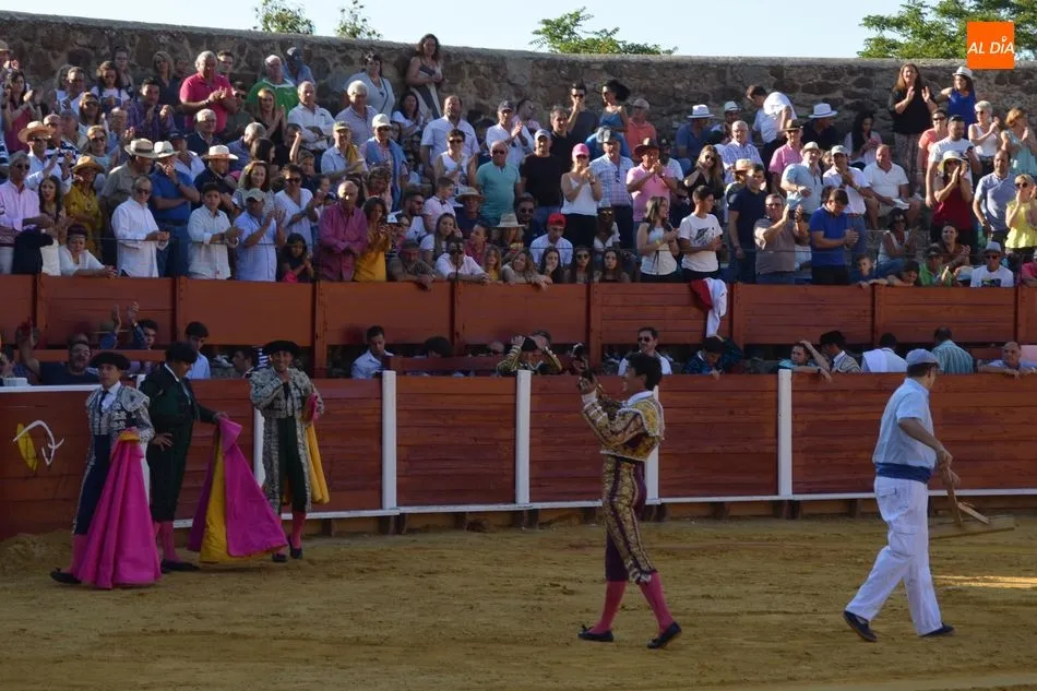 Tarde de toros en la plaza más antigua del mundo. Béjar celebra la corrida del día grande de las fiestas patronales en El Castañar, con una nueva presidencia debido al cambio de Gobierno que han traído a la ciudad las pasadas elecciones, la concejala de festejos, Ana Vicente Peralejo, ha sido la representante municipal encargada de entregar los trofeos a las mejores faenas.