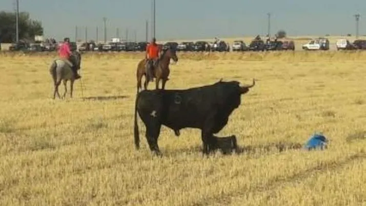 El astado le cogió a la entrada hacia el pueblo donde, al parecer, se produjo "un remolino de gente y el toro se lo ha llevado por delante con una cornada tremenda", precisó el alcalde, José Manuel Moral, muy afectado. "Yo solo he visto al hombre ya en el suelo pero ha sido tremendo", indicó Moral.