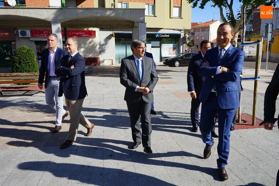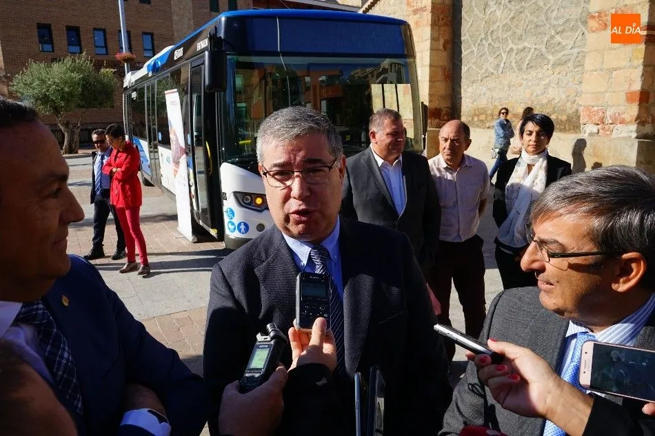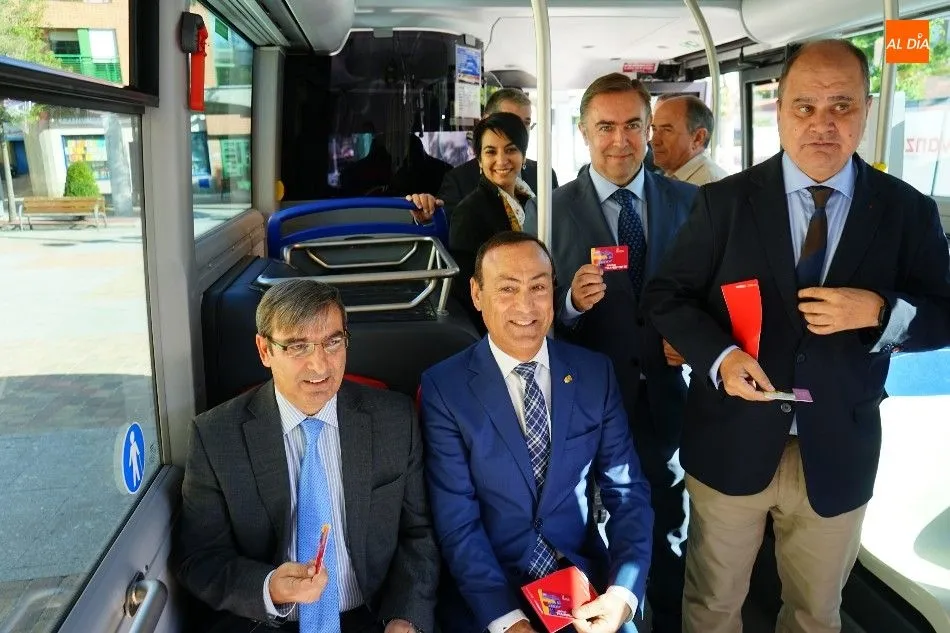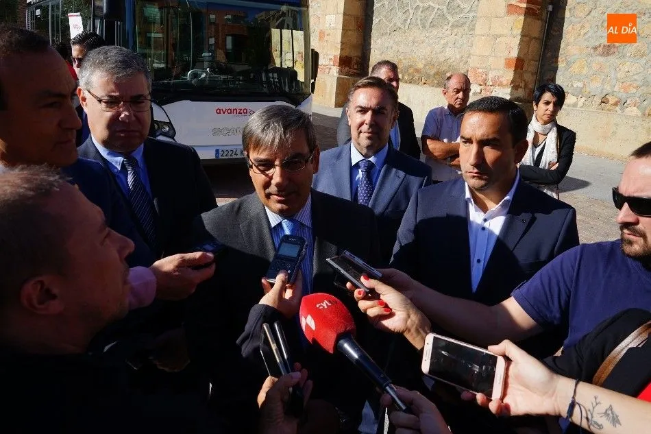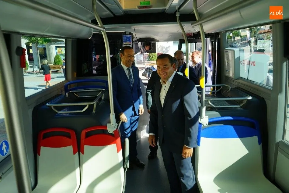 El viceconsejero de Infraestructuras y Emergencias de la Junta de Castilla y León, José Luis Sanz Merino; y el director general de Transportes, Ignacio Santos Pérez, estuvieron en Carbajosa de la Sagrada para la inauguración del nuevo servicio de transporte.