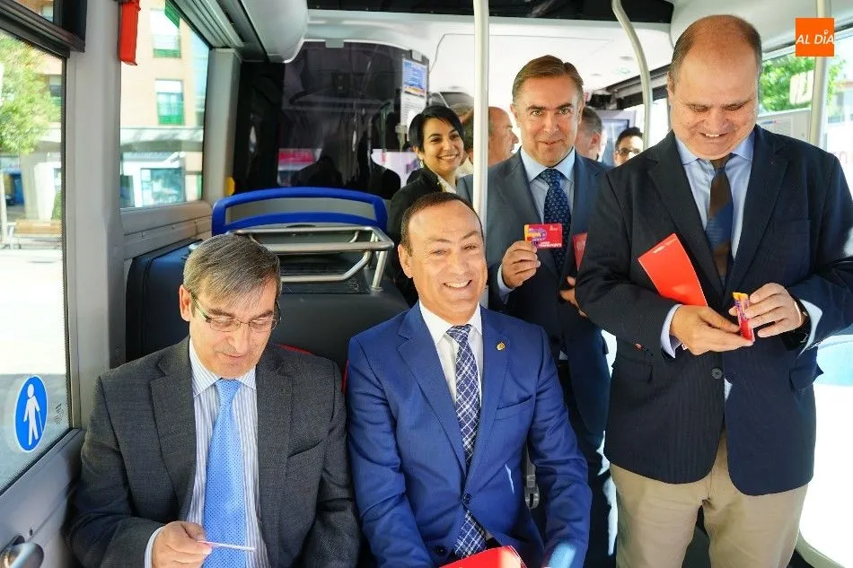 De este modo, los vecinos de Carbajosa de la Sagrada ya pueden disfrutar de un nuevo servicio de transporte metropolitano con paradas en los hospitales y en el Campus Universitario; y la ampliación de horarios durante los domingos y festivos. El alcalde de Carbajosa, Pedro Samuel Martín, y el concejal de Transportes, Ángel Manso, también acompañaron a los representantes de la Junta de Castilla y León en esta puesta en marcha del nuevo servicio.