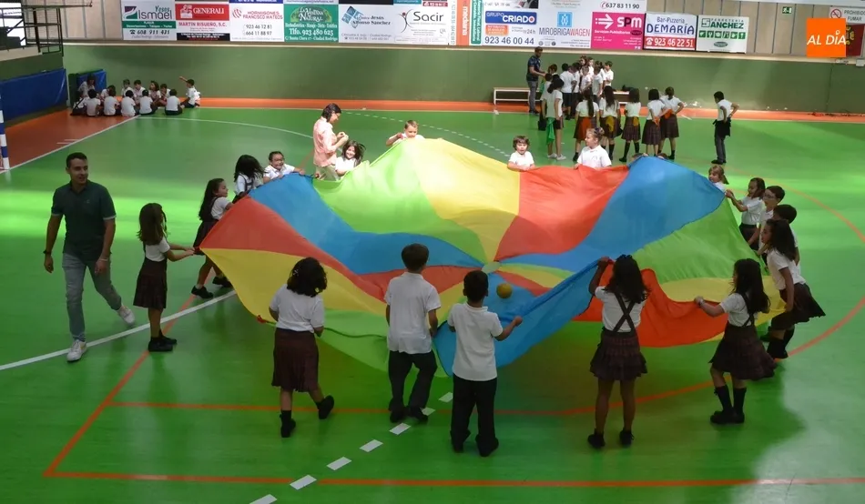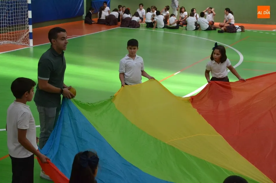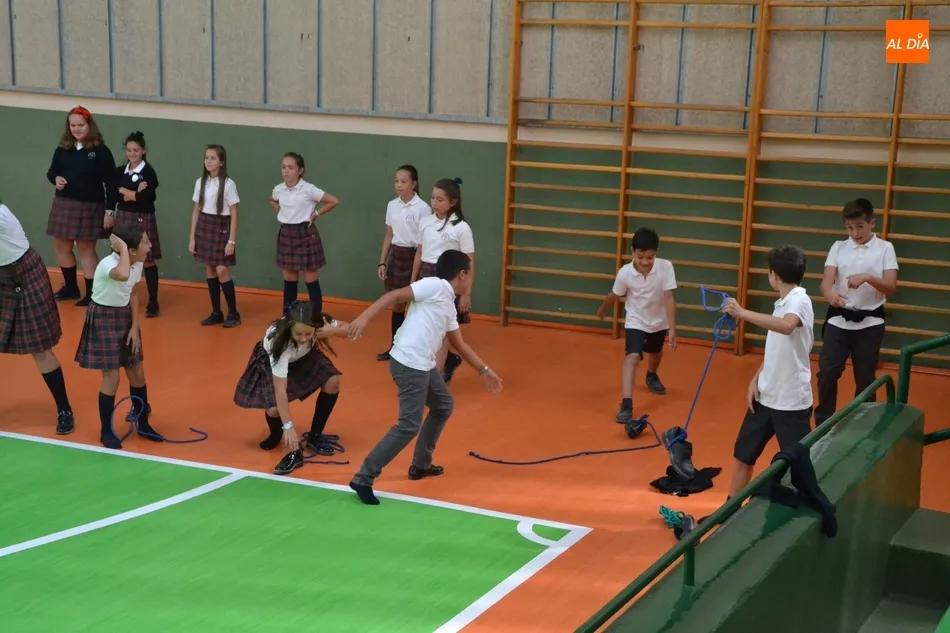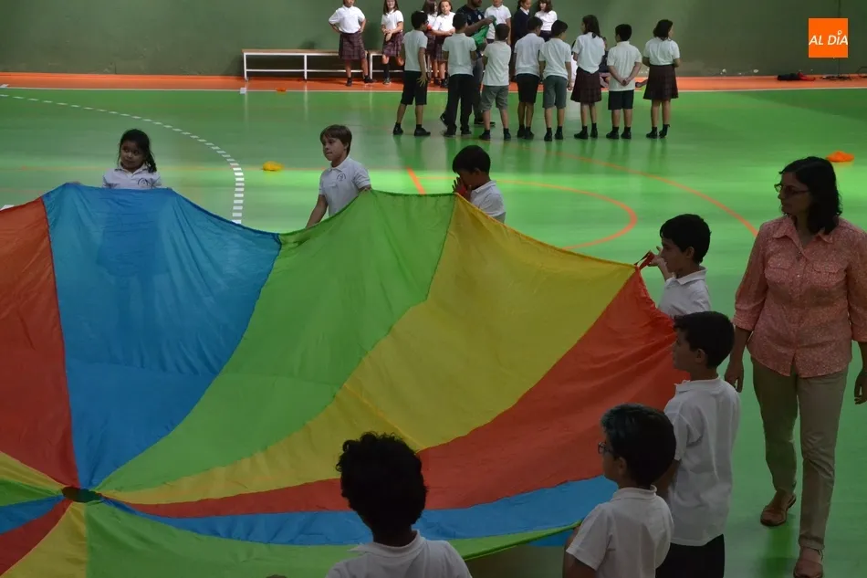 Para rematar el acto en el patio, se cantó el Cumpleaños Feliz a uno de los alumnos que inicia el curso cumpliendo años. Tras ello, los alumnos de Educación Primaria se acercaron al vecino Pabellón de la Avenida Conde de Foxá para desarrollar una gymkana con varios juegos, rotando cada uno de los grupos por un total de 7 estaciones.
