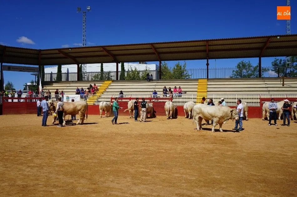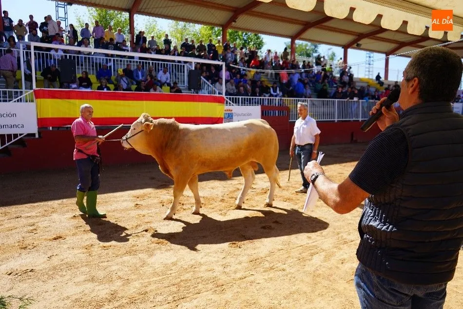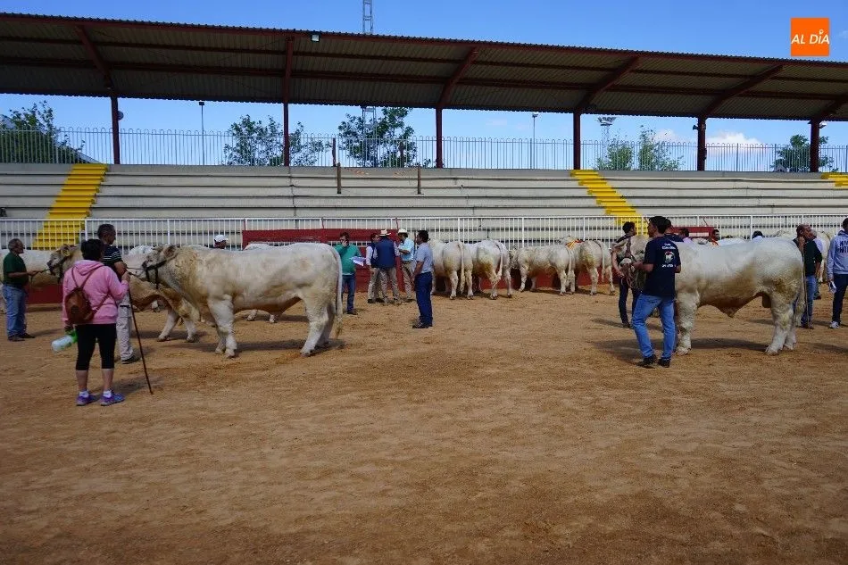 Por la arena desfilaron los ejemplares que han participado en la 31 Exposición Internacional de Ganado Puro, es decir 162 cabezas de 7 razas. Entre las razas españolas, salían a subasta 49 ejemplares machos de la raza charolesa, 19 ejemplares machos de Limusina, 11 ejemplares machos de la raza Blonda de Aquitania.