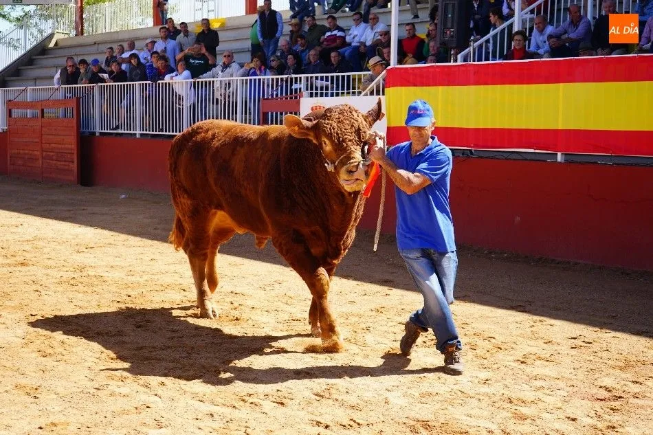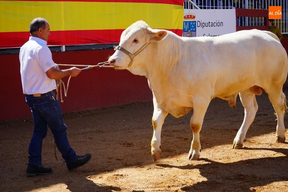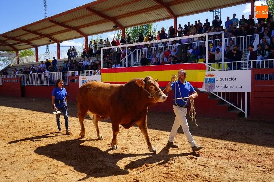 La subasta nacional de ganado vacuno de Salamanca, que se celebrará este martes en el Anillo de Exhibiciones del Recinto Ferial, ha tenido su momento culminante con la llegada de ?Nini?, un toro de raza limusín de 1.643 kilos, propiedad de Daniel Heras, por el que han pagado 15.000 euros.