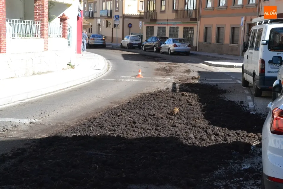 Un amplio tramo de la Avenida Conde de Foxá de Ciudad Rodrigo permaneció cortado al tráfico de vehículos durante parte de la tarde del martes después de que un camión que iba circulando por la vía perdiese parte de la carga de estiércol que transportaba. El incidente, que tuvo lugar minutos antes de las 17.00 horas, se originó a la altura de la confluencia de la Avenida Conde de Foxá con la calle Che Guevara.
