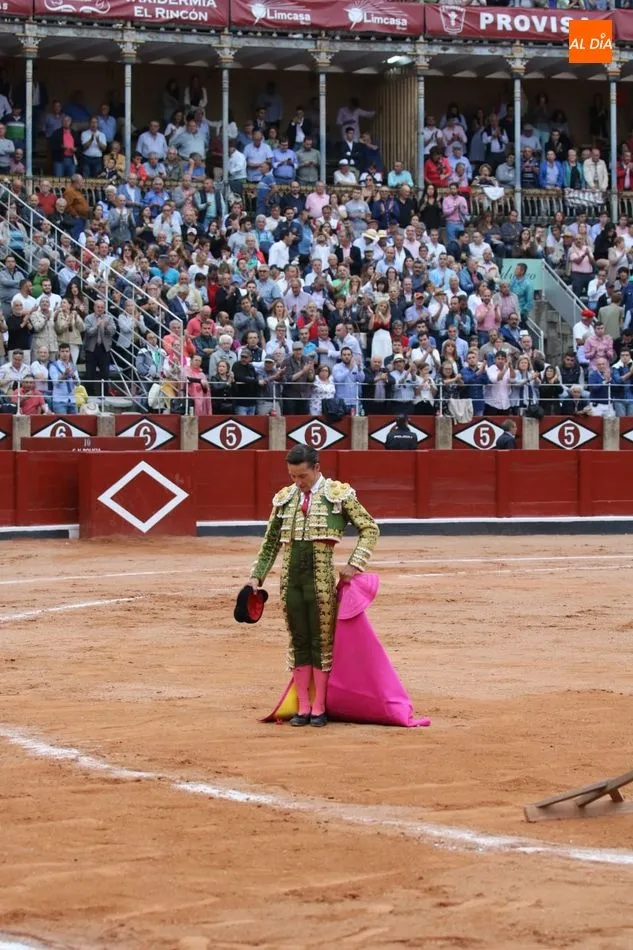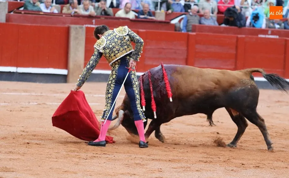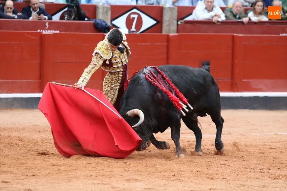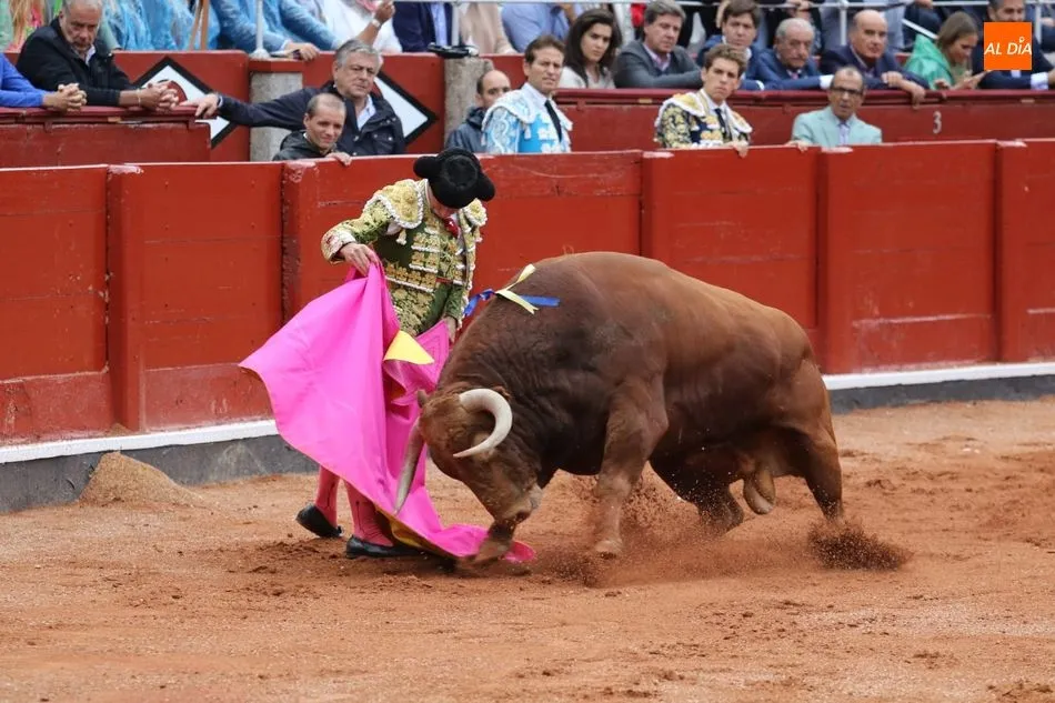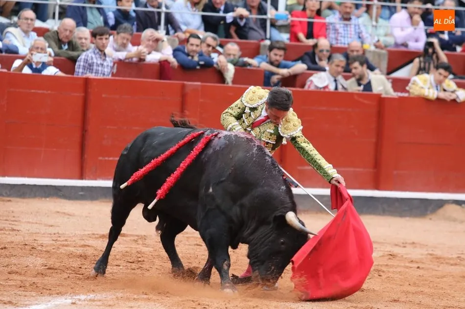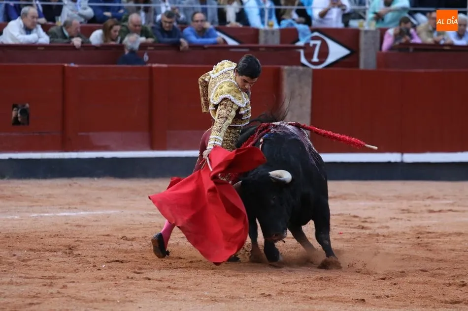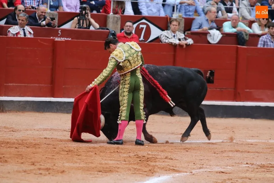 Recibe a la verónica en el tercio y recibe un gran puyazo. Brindis al público. Inicia pegado a las tablas. Toro más áspero y rebrincado, Diego Urdiales en los terrenos del toro, poniéndolo todo y sacando más de lo que tiene y sin opciones de lucimiento. La condición del toro le niega la posibilidad de una puerta grande en su presentación en Salamanca. Estoconazo fulminante. Saludos.
