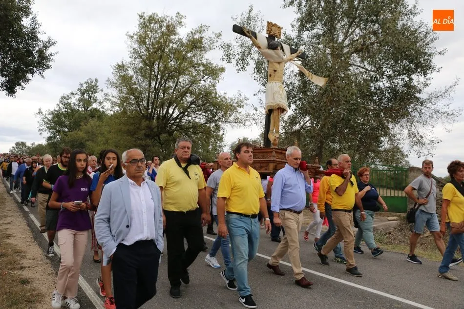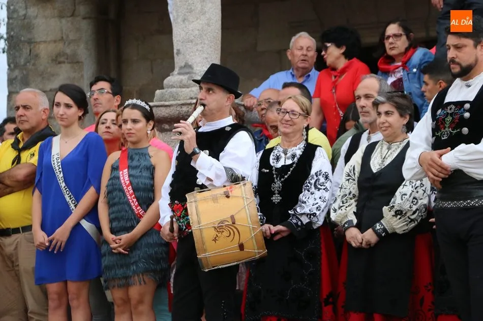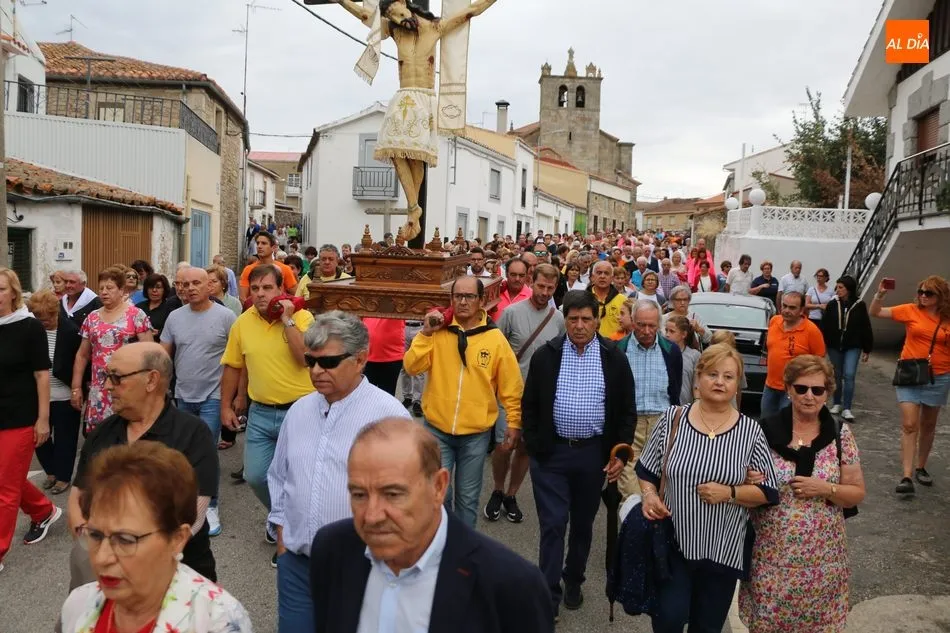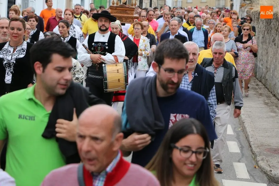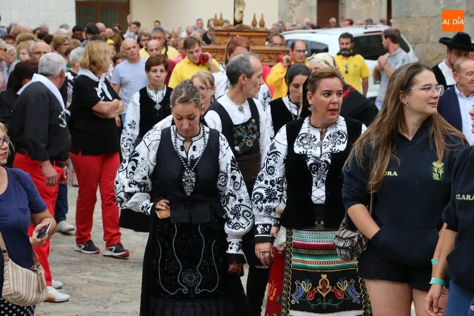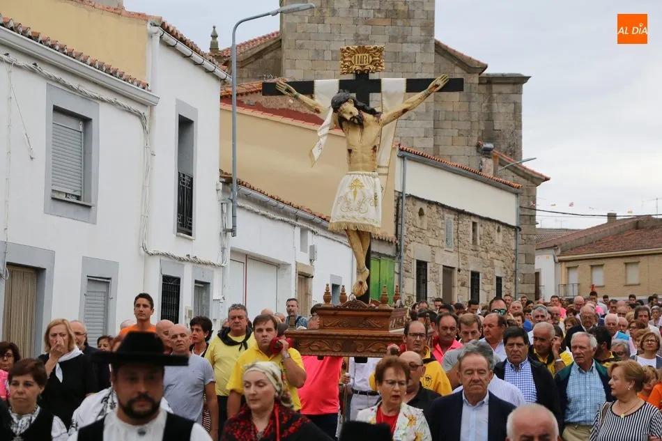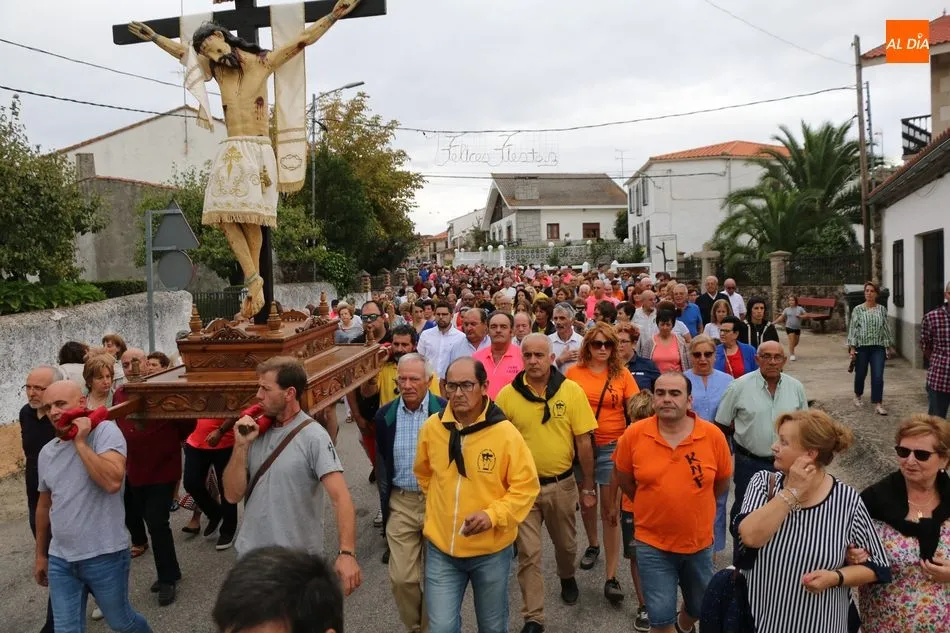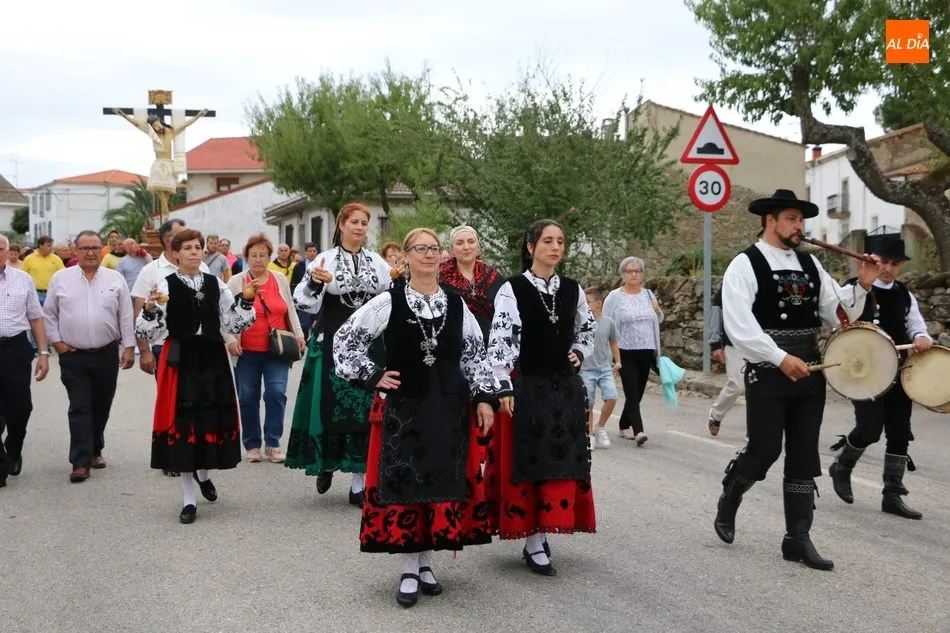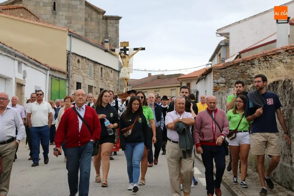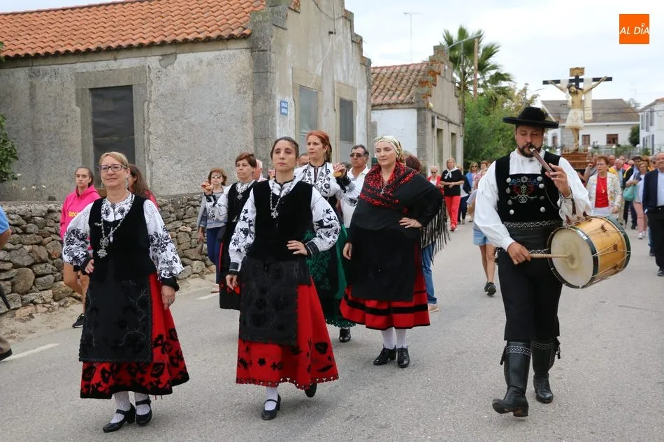 Ya en la tarde, el grupo de folclore San Marcos de Doñinos de Salamanca, ponía la nota charra en la procesión del Cristo camino de su ermita, un acto que fue seguido por cientos de vecinos que no quisieron perderse este extraordinario momento. En la comitiva, además del alcalde Jesús María Ortiz, el párroco Jean Claude y la corte de honor, formada este año por Henar García Martínez, en el papel de reina, y por Ana Vicente González y Marina Sendín Rodríguez como damas.