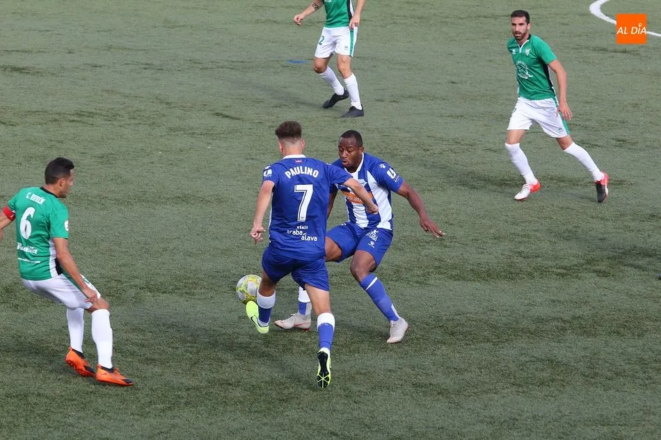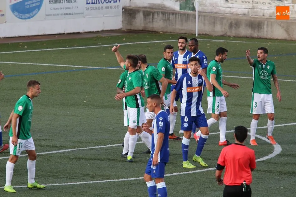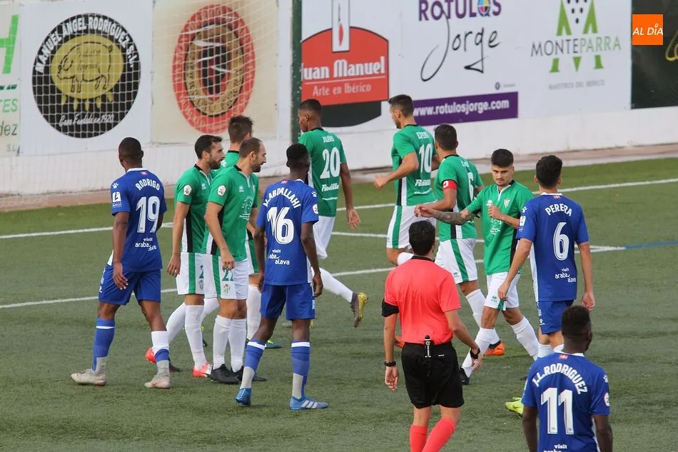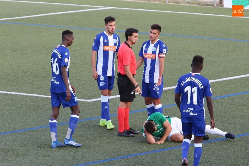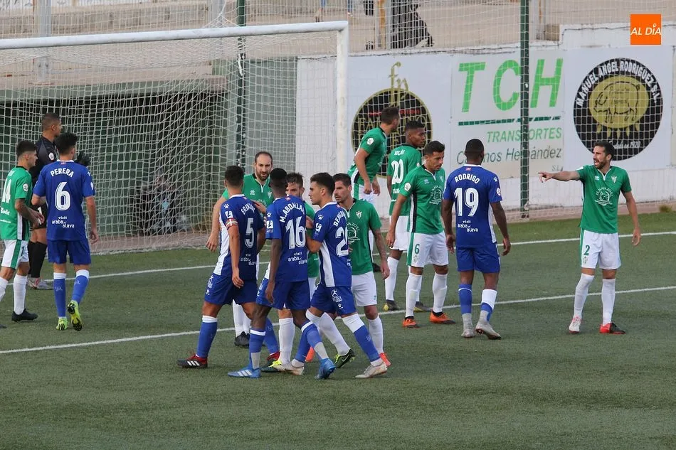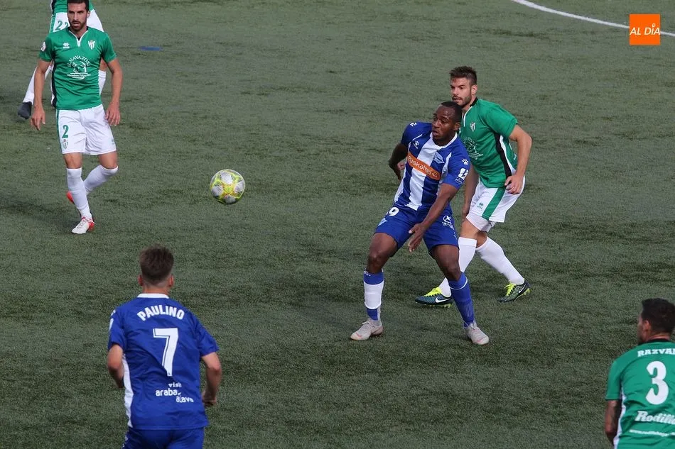 Por detrás en el marcador, el Alavés no perdió la compostura y ejerció su papel de equipo peligroso, pero que es capaz de poner buen fútbol en el campo. La pugna por el centro del campo fue interesante, con dos equipos proponiendo ideas y dejando que el balón se moviera con agilidad. Bolaños destacó para los locales, con mucha actividad arriba, incansable en su búsqueda de una oportunidad de gol. El Alavés, por si parte, no daba en absoluto sensación de equipo derrotado, pero tampoco lograba llegar con claridad a la portería de Guille Vallejo, estando más cerca el Guijuelo de marcar el segundo durante la primera mitad.