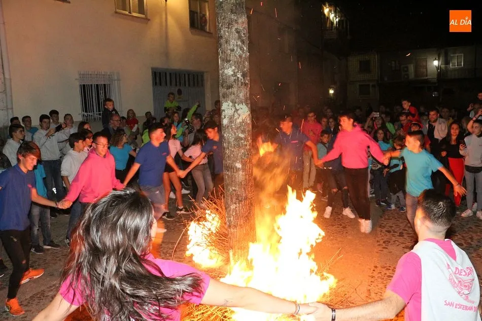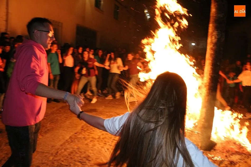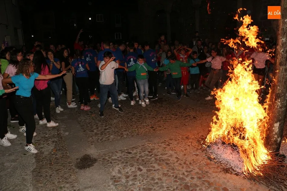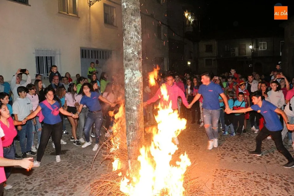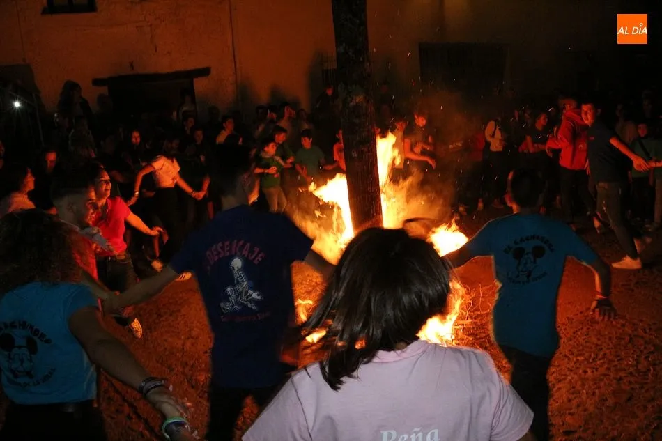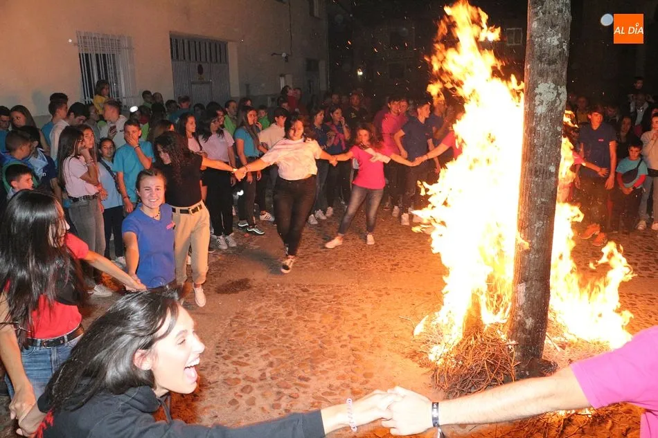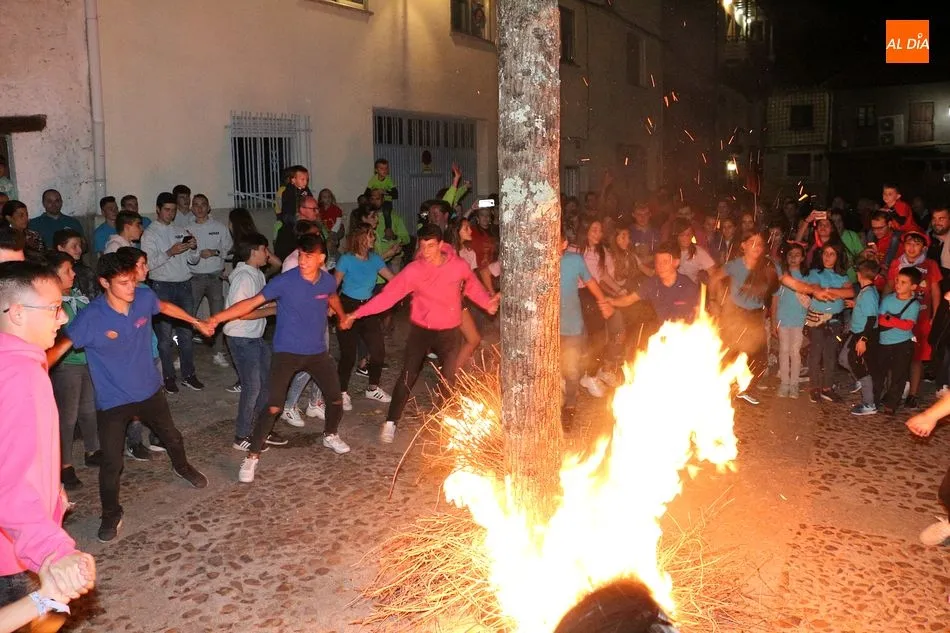 Las llamas del peculiar ?Castillo? en la plaza de la Iglesia cerraron la jornada, con los jóvenes de la localidad danzando en torno al fuego ante numeroso público.