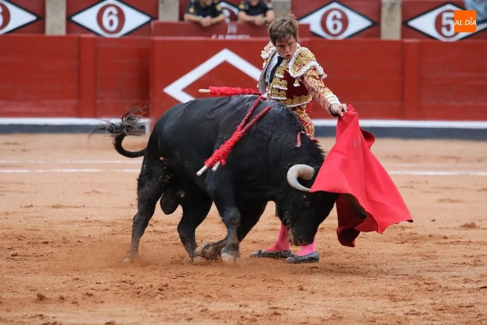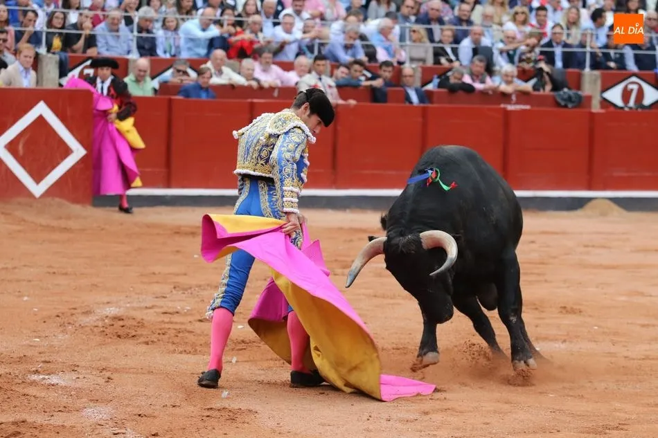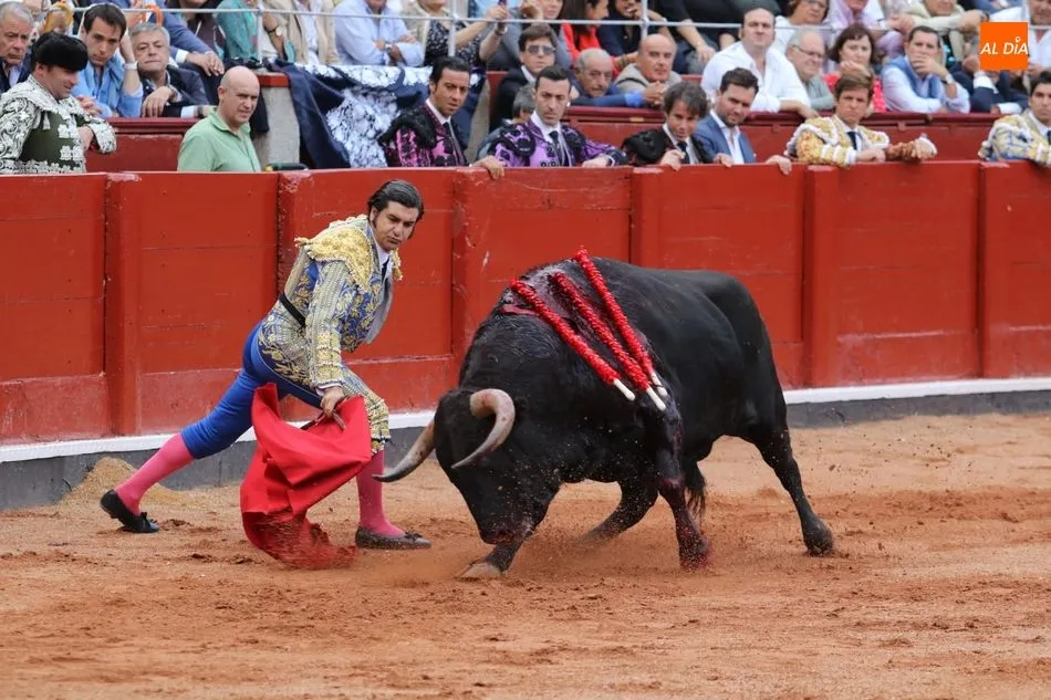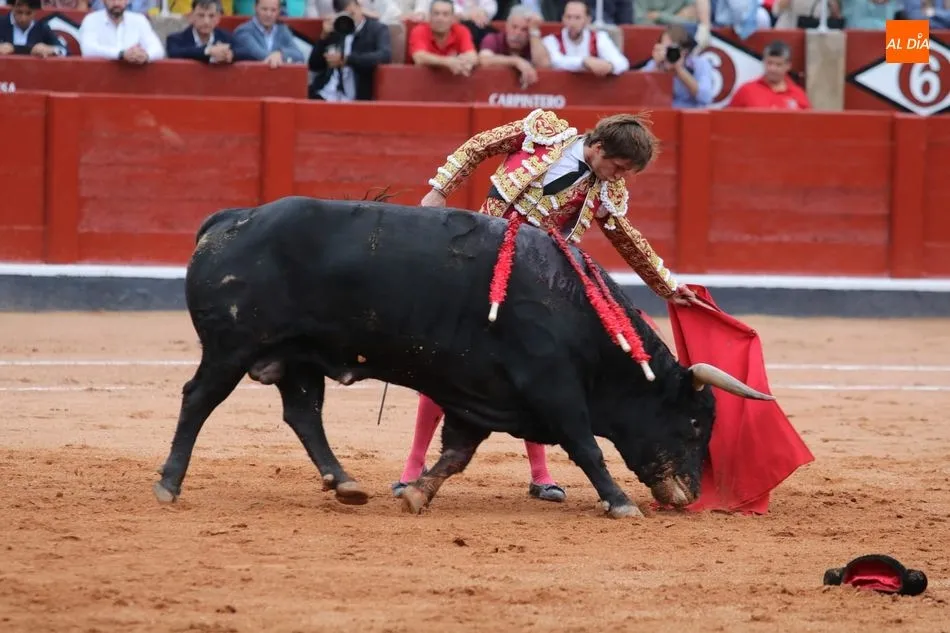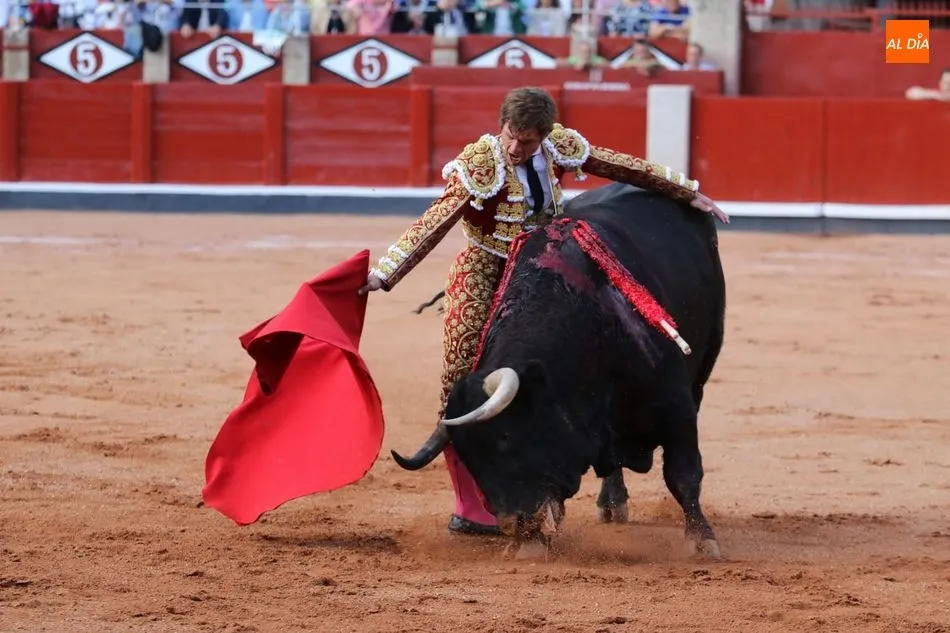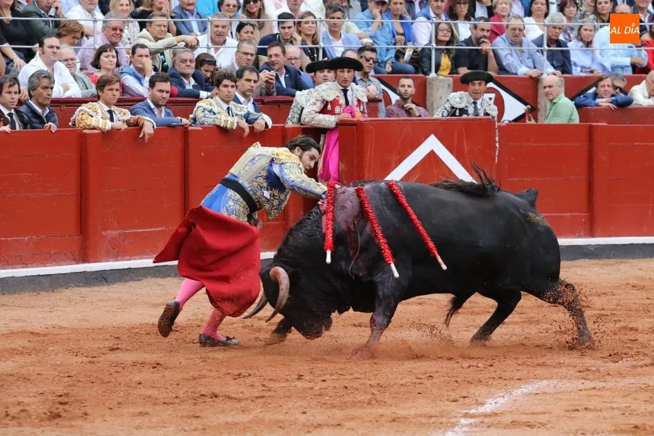 Templadas verónicas de recibo de mano baja sacándolo a los medios. Buen tranco, clase y humillación. Toma un puyazo y El Juli se luce en un quite por chicuelinas de mano baja en los medios. Dos arriesgados pares de Álvaro Montes. Brindis al público. Series iniciales ligadas y con largura con la diestra aprovechando el pitón derecho del toro. Al natural dibuja naturales hondos y a ralentí en una faena que va a menos, con el viento molestando. Estocada sin puntilla. Dos orejas.