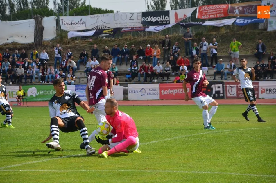 Sin embargo, el estado de euforia se apoderó de los salmantinos y David Grande se creó un penalti de la nada y con acierto superó al meta rival desde los 11 metros y firmó el 2-0, resultado con el que se llegó al intermedio.