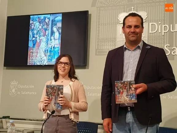 El diputado de Cultura de la Diputación de Salamanca, David Mingo, y la autora del libro, Cristina Díez, presentaron la publicación ?Pintura tardogótica salmantina? con el objetivo de promover el arte.