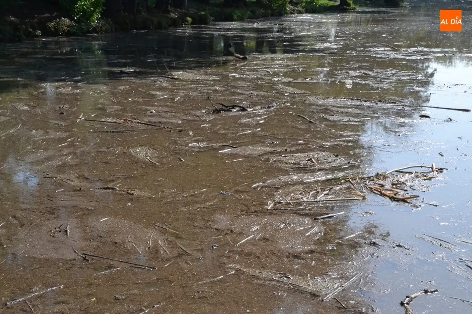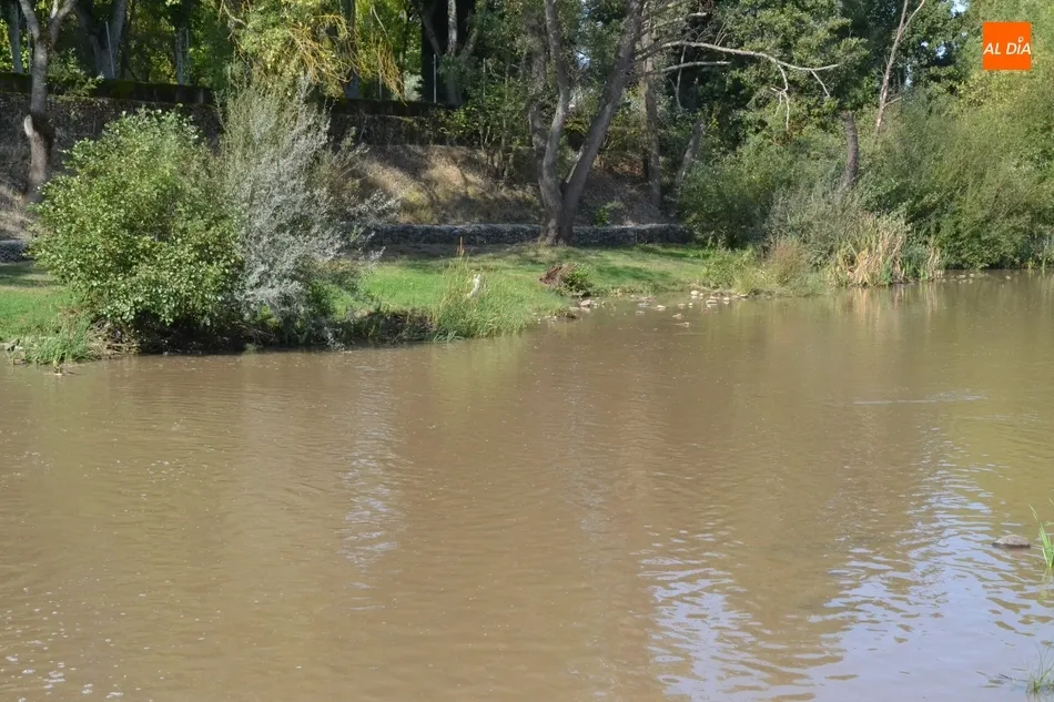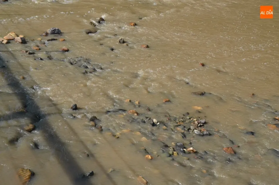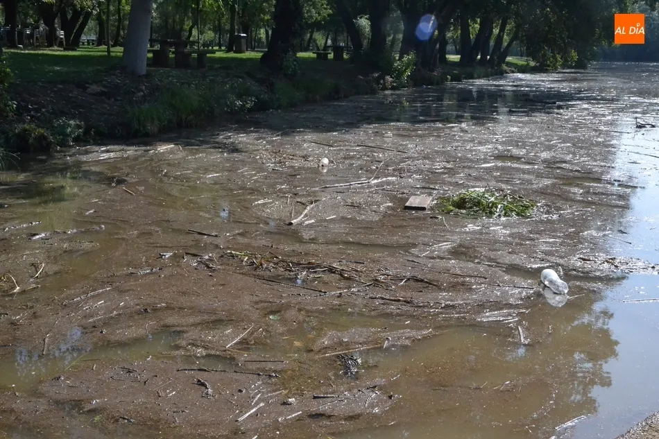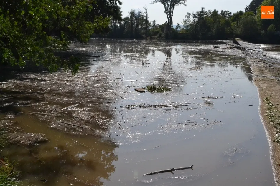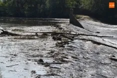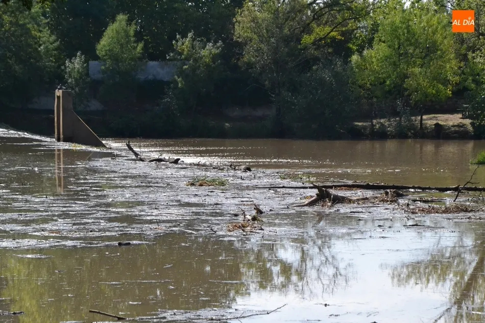 Como condicionante general, el agua baja con un ?color chocolate? producto de todo lo que llegó al río durante la tarde del martes, que tiene su mejor reflejo en La Pesquera, donde se pueden ver en la superficie del agua restos variados, incluido botellas de plástico, trozos de madera, y especialmente, múltiples ramas de diversos tamaños, que han quedado varadas justo en la presa.