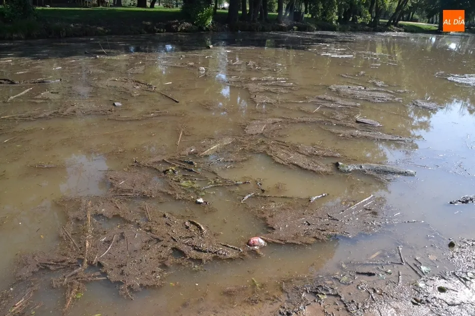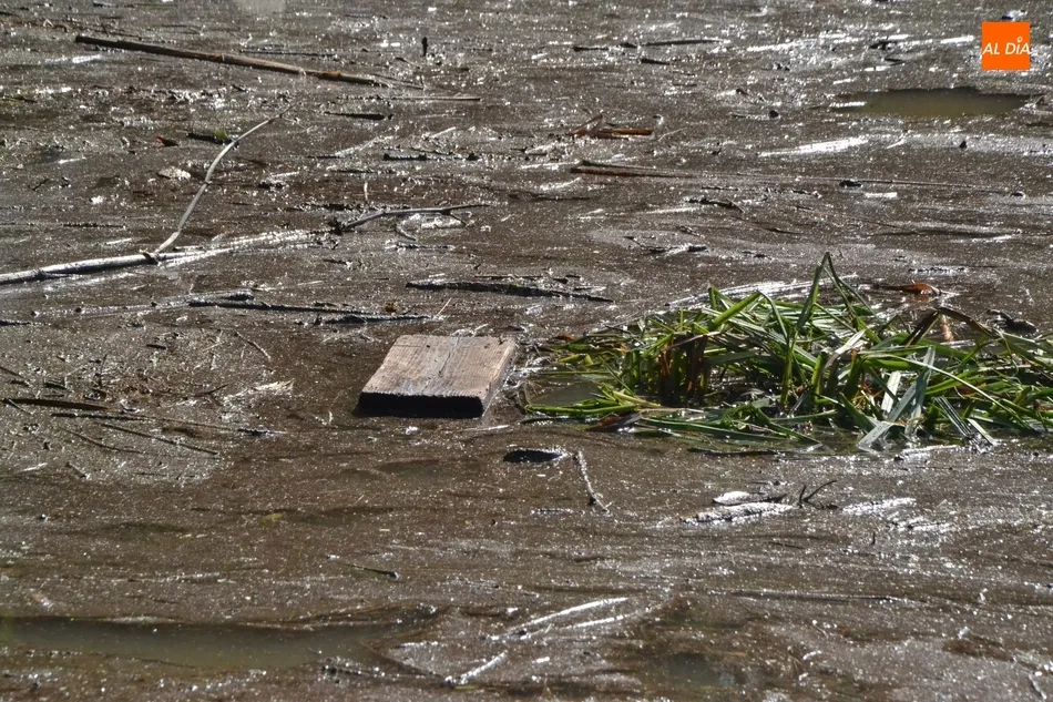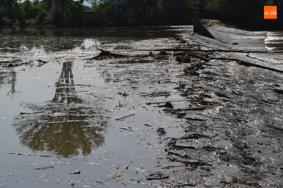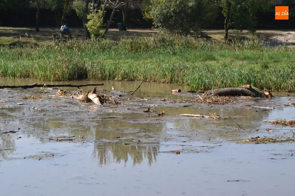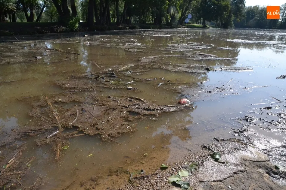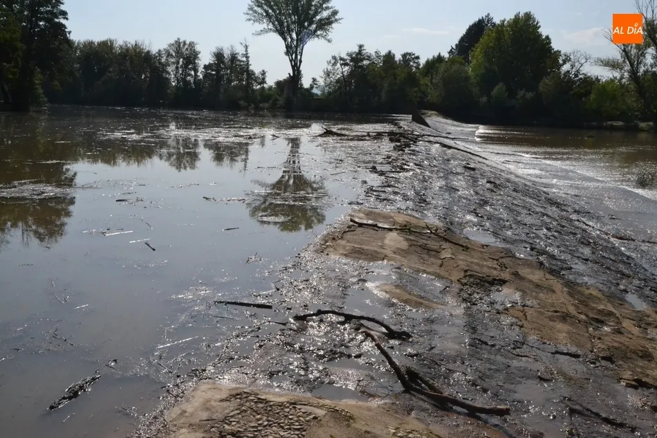 Como condicionante general, el agua baja con un ?color chocolate? producto de todo lo que llegó al río durante la tarde del martes, que tiene su mejor reflejo en La Pesquera, donde se pueden ver en la superficie del agua restos variados, incluido botellas de plástico, trozos de madera, y especialmente, múltiples ramas de diversos tamaños, que han quedado varadas justo en la presa.