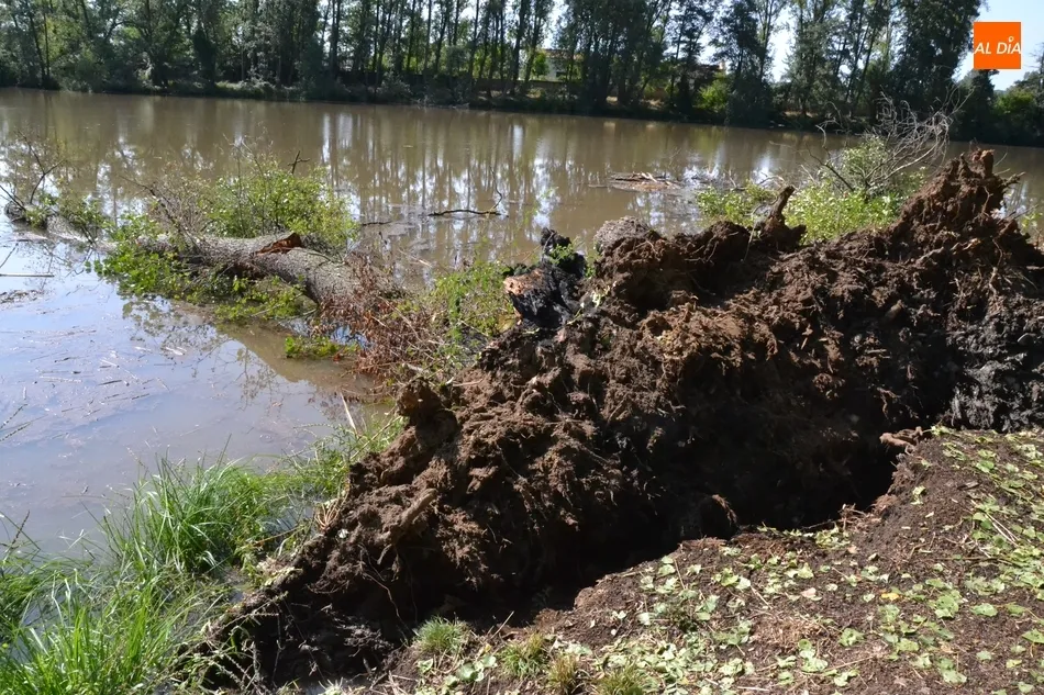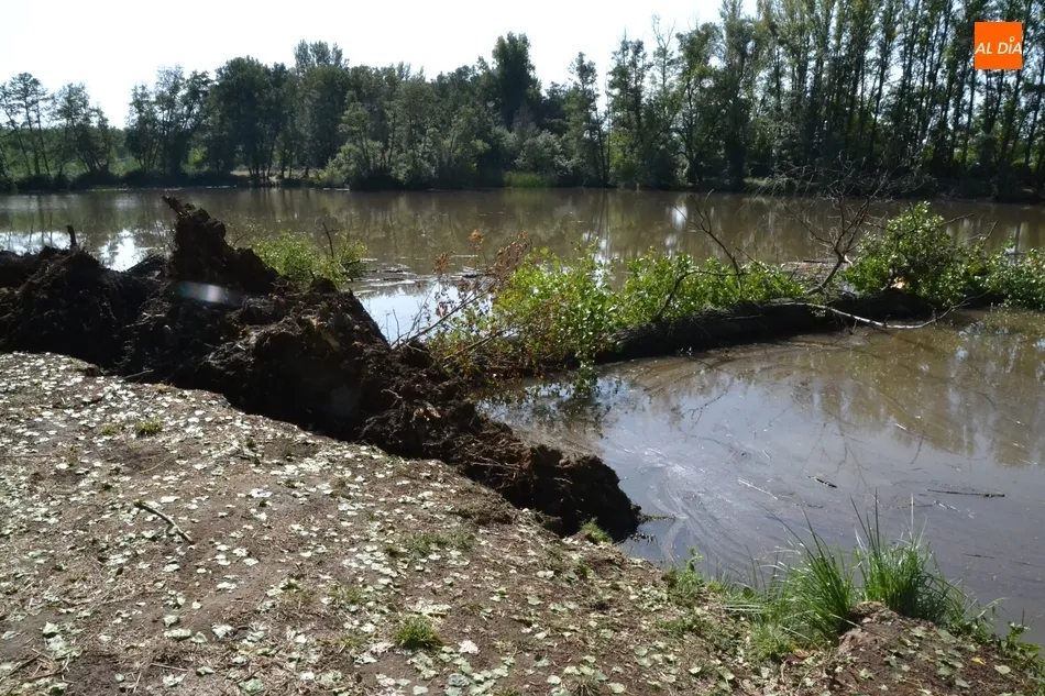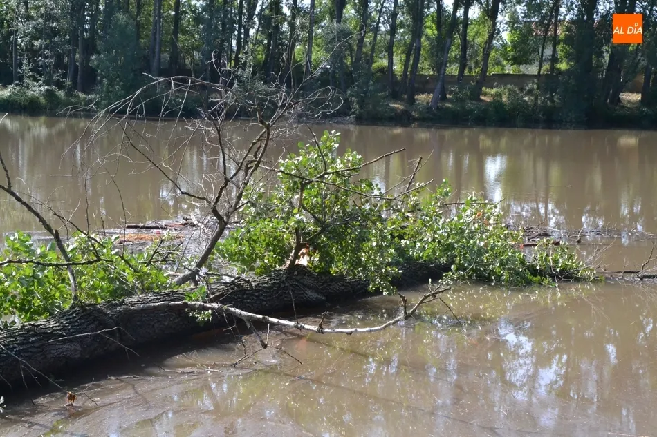 La tormenta deja en el río árboles caídos y el agua de color chocolate y repleta de arrastres