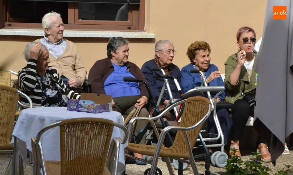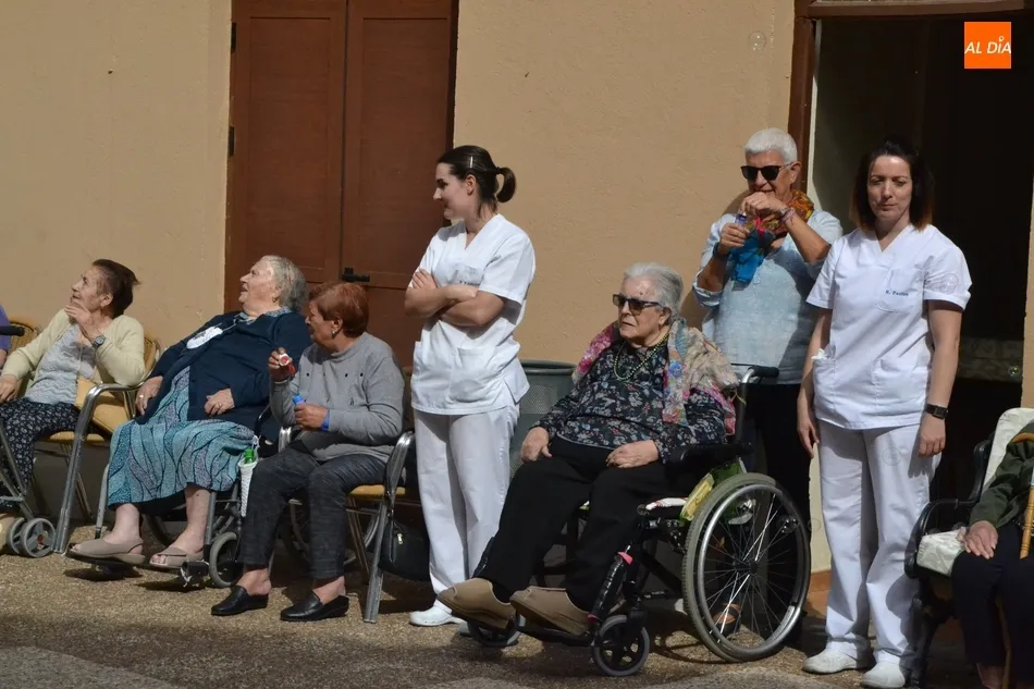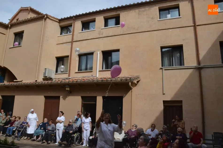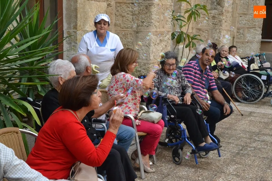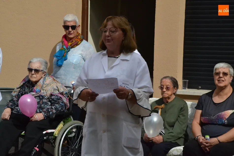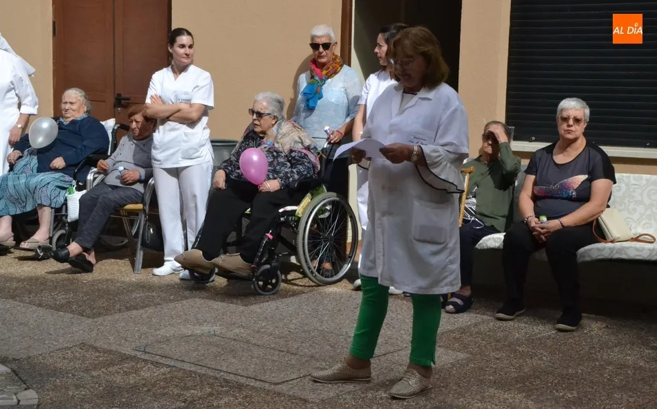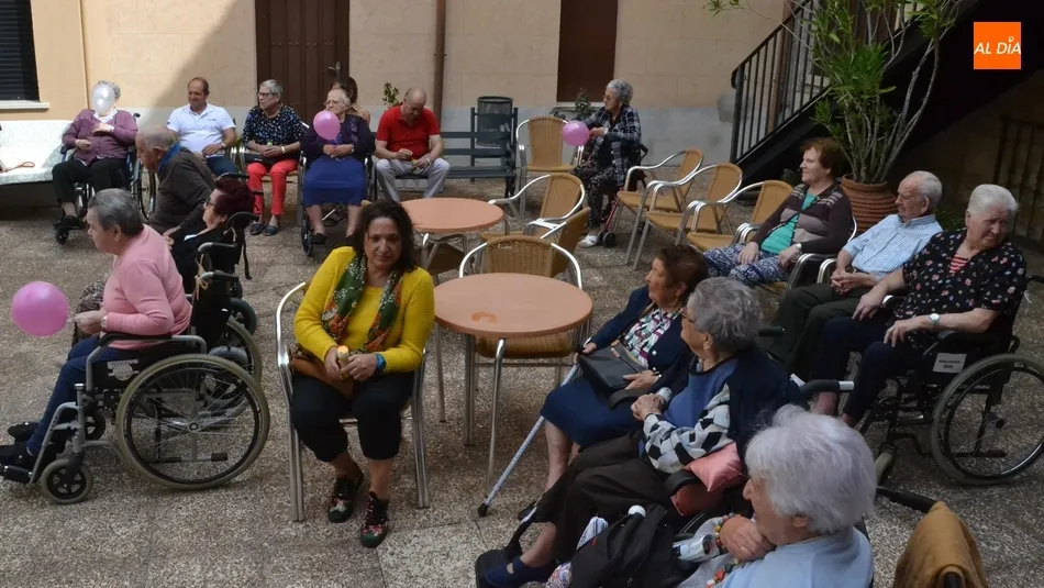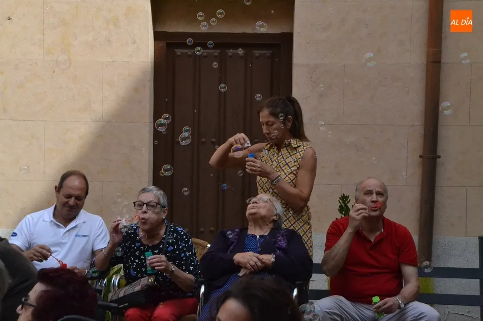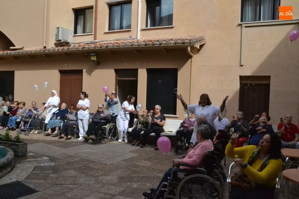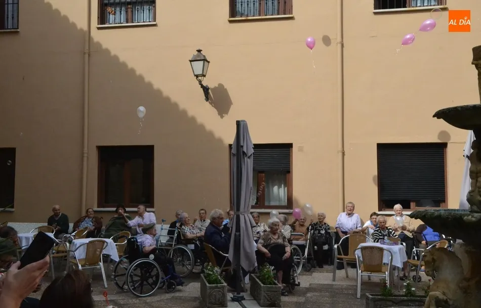 Ese acto consistió, por un lado, en la lectura de un manifiesto en torno a la enfermedad, a través del cual se quiso especialmente transmitir apoyo a los enfermos de Alzheimer y a sus familiares. A continuación, se soltaron varios globos que habían sido repartidos de forma previa a los presentes, y al mismo tiempo, comenzaron a funcionar los pomperos que también se habían entregado a aquellos que quisieron, llenándose el patio de pompas de jabón.