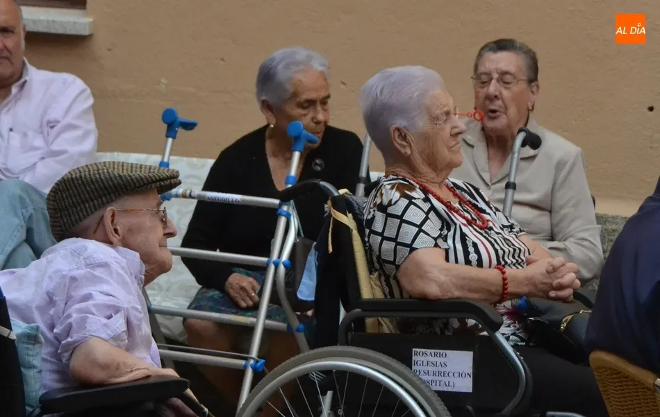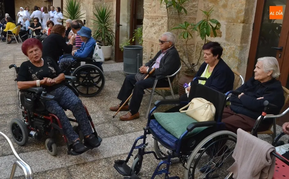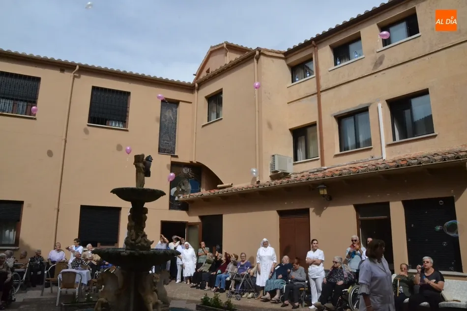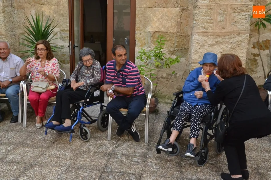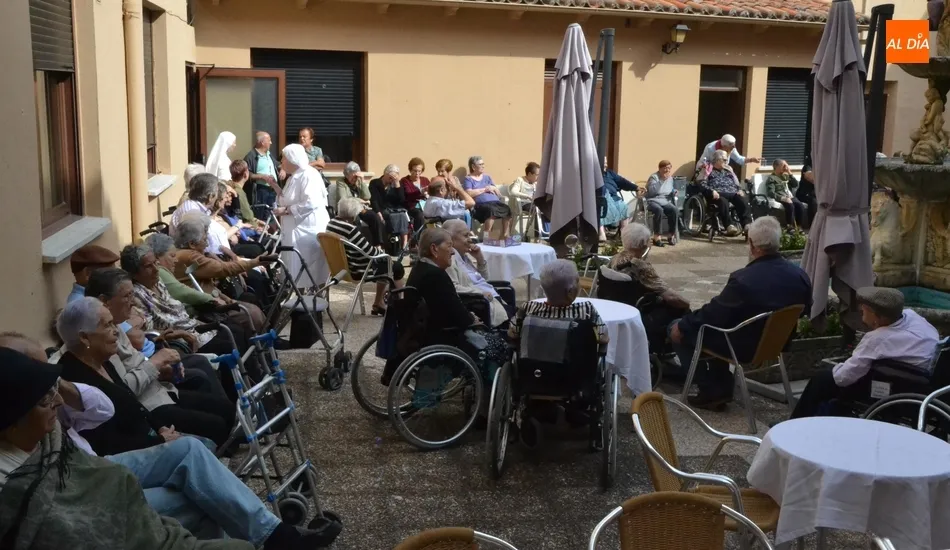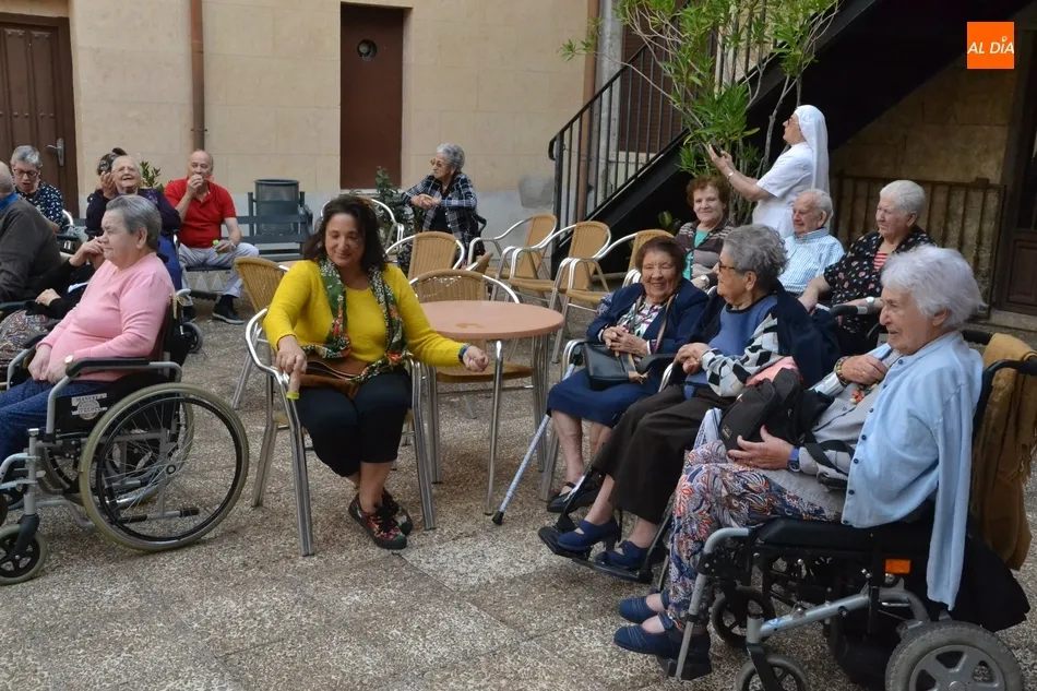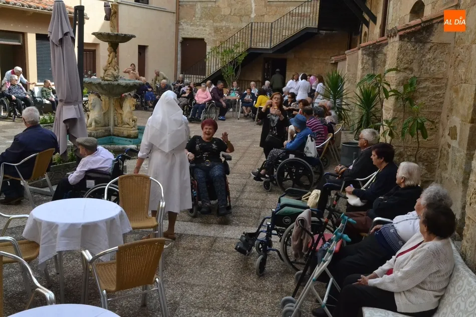 Para este acto de la mañana del viernes, se dieron cita en el patio principal del Hospital la práctica totalidad de sus residentes y trabajadores, así como las Hermanas de la Congregación de las Siervas de María encargadas del Hospital, y unos cuantos familiares de los residentes, que estaban allí de visita.